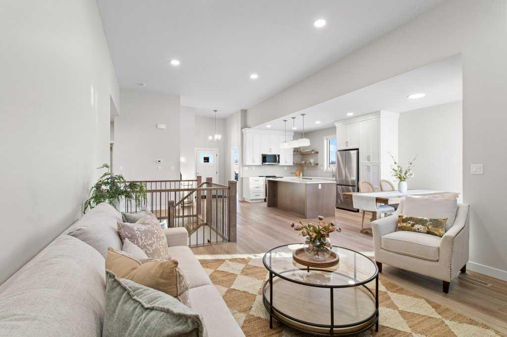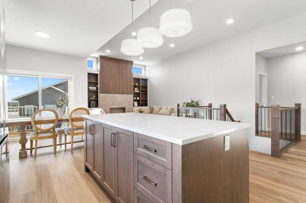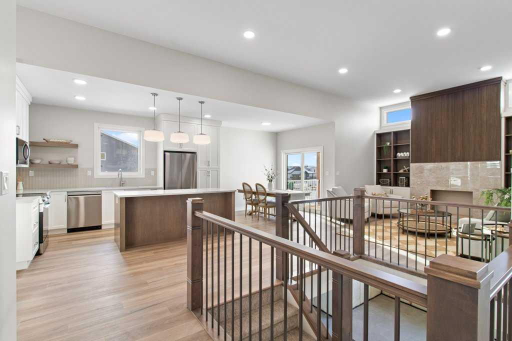 Perfect for families and mature individuals seeking a bungalow for their new dream home. A main level layout with two well-appointed bedrooms and a full 4 piece bath. The heart of the home is a stunning large kitchen, complete with quartz countertops and large island that’s perfect for entertaining and culinary delights. The dining area access to a covered west facing deck offers an outdoor extension to your living space. An electric fireplace with a gorgeous feature wall with built in cabinetry promises to be the centerpiece of your cozy evenings. You master suite will be a sanctuary with an ensuite boasting double sinks a tiled shower and a spacious walk in closet for unparalleled comfort and privacy. As you enter from your 2 car garage you will enter a mudroom with large bench and a main floor laundry adding a layer of practicality and ease. Large undeveloped basement awaits your creative vision.