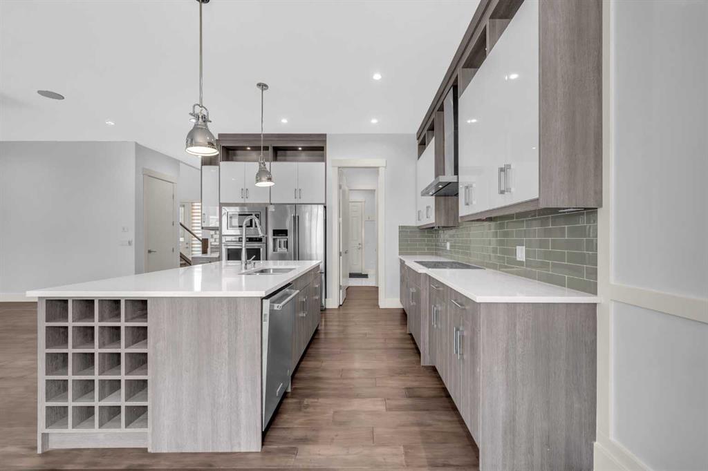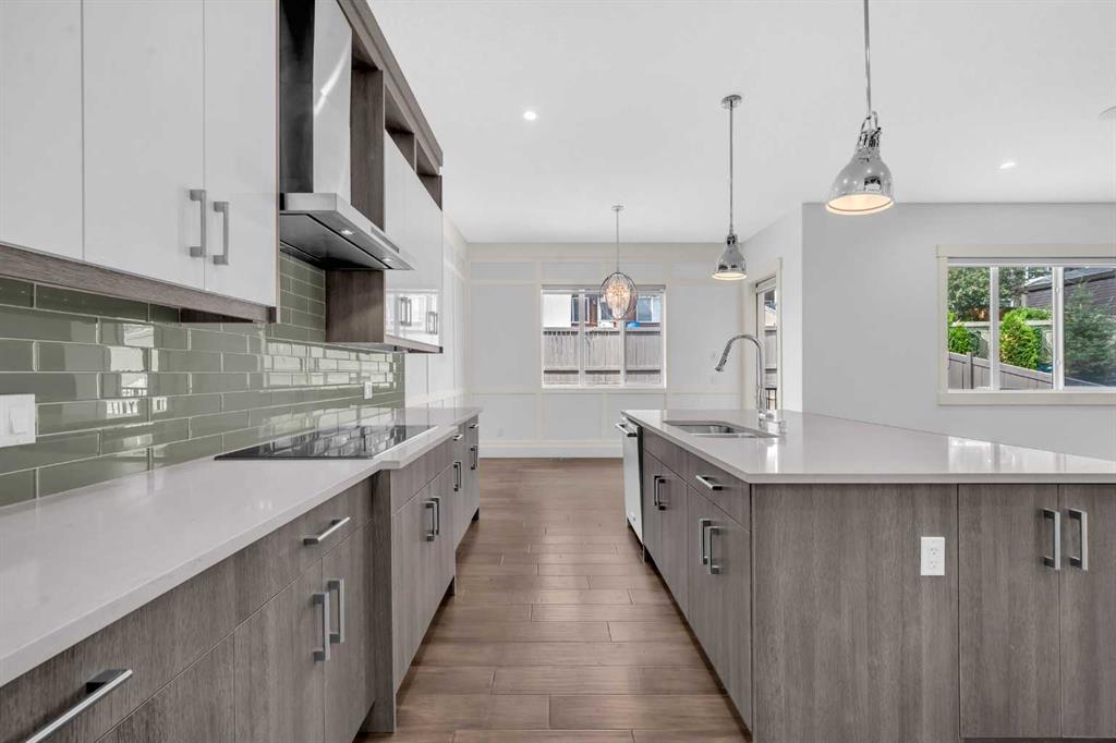 Exceptional Luxury Living in Evanston – 2-Storey Executive Home | 5 Bedrooms + Den (2 Ensuites) | Finished Basement w/ Side Entrance | A/C | Stucco Exterior. Welcome to this immaculately maintained and extensively upgraded luxury home located in the highly sought-after community of Evanston. Perfectly designed for large families and multi-generational living, this impressive 2-storey residence offers a thoughtfully planned layout with over 3,000 sq. ft. of living space across three levels, including 4 spacious bedrooms upstairs, a main-floor den, and a fully finished basement.As you step into the grand foyer, you\'re greeted by 9-foot ceilings, warm hardwood flooring that flows throughout the main level, and an abundance of natural light. The inviting living room is anchored by a beautifully tiled centered gas fireplace, creating a cozy and elegant space to unwind or entertain.The heart of the home is the chef-inspired kitchen, featuring ceiling-height cabinetry, high-end stainless steel built-in appliances, sleek quartz countertops, and an expansive island with bar seating — ideal for casual dining or hosting guests. A spacious walk-through pantry leads conveniently to the mudroom and garage, offering additional storage and functionality. Adjacent to the kitchen is a generous dining area that overlooks the fully landscaped backyard, creating a seamless indoor-outdoor experience.Also on the main level is a flexible den space, perfect as a home office, guest room, or fifth bedroom, offering convenience and versatility for changing family needs.Upstairs, the home continues to impress with 4 generously sized bedrooms, each offering ample closet space and large windows. Three of the bedrooms feature private ensuite bathrooms, making this an ideal setup for families or guests who value privacy. The primary suite is a true luxury retreat, complete with a large walk-in closet and an opulent 5-piece ensuite featuring dual sinks, a deep soaker tub, separate glass shower, and high-end tile finishes throughout. A bright and open bonus room completes the upper level — perfect as a secondary living space, playroom, or media lounge.The professionally finished basement offers even more space to live and entertain. With a separate side entrance, this level includes a huge family/recreation room, a fully equipped wet bar, a spacious bedroom, and room to potentially add an additional bathroom or kitchen setup for future rental income or extended family living. Outside, the home is complete with a fully landscaped and fenced backyard, ideal for summer BBQs, kids’ play, or quiet evenings outdoors. The durable stucco exterior adds both style and low-maintenance protection, while the addition of central air conditioning ensures year-round comfort. Every inch of this home has been meticulously designed and upgraded to offer style, space, and functionality.