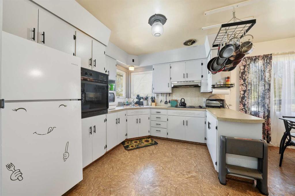 Welcome to this well-kept 5-bedroom, 2-bathroom home offering 1,233 sq. ft. of comfortable living space on a 6,000 sq. ft. lot. Nestled on a quiet, tree-lined street, this property provides a wonderful blend of small-town charm and everyday convenience—just a short walk to downtown Ponoka where you’ll find shops, restaurants, and essential amenities. The main floor features a bright and spacious living area, three comfortable bedrooms, a full bathroom, and a generous kitchen/dining area perfect for family gatherings. The kitchen is full of character, featuring thoughtful details like a built-in spice cupboard and a convenient flour drawer—unique touches that you don’t often find in today’s homes. Downstairs, you’ll discover two additional bedrooms, a den, a second bathroom, and a laundry area, plus an unfinished space ready for your personal touch—whether you envision a rec room, workshop, or extra storage. Outside, enjoy a single detached garage with a metal roof, extra parking at the back, and a handy storage shed. With plenty of room for outdoor activities and a peaceful setting, this property offers a great opportunity to settle into a friendly community while still being close to everything you need.