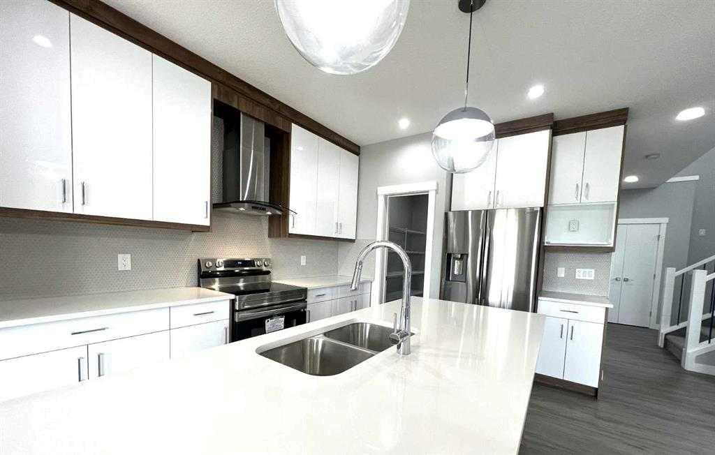 Welcome to this beautifully designed 3-bedroom, 2.5-bathroom home—perfect for families or anyone seeking space, style, and comfort. With a striking open-to-below layout and soaring ceilings, the home offers a bright, airy ambiance that’s sure to impress. Contemporary upgraded lighting enhances the elegance throughout. The main floor features a spacious mudroom, a convenient 2-piece bath, and a large open-concept living area complete with an electric fireplace. The dining area flows seamlessly into a gourmet chef’s kitchen, boasting high-end stainless steel appliances, quartz countertops, a walk-through pantry, and a sleek, modern design. Upstairs, you’ll find a cozy family room, a full 4-piece bathroom, laundry room, and three generously sized bedrooms—including a luxurious primary suite with a massive walk-in closet and a spa-inspired ensuite featuring a soaker tub, glass-enclosed shower, and double vanity. Enjoy the outdoors in your private backyard, perfect for kids or pets, with direct access to the green space behind. This home backs onto a field shared with a K-9 Elementary School and a nearby Sports & Recreation Centre—ideal for active families. Additional features include a DOUBLE attached garage, stainless steel kitchen appliances, and a washer & dryer included for your convenience. Don’t miss your opportunity to own this exceptional property!