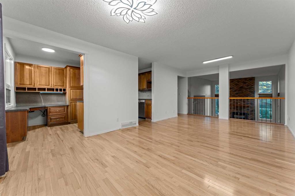 Step inside and feel instantly at home. The layout flows effortlessly across multiple levels — the spacious family room with brand-new carpet and soaring ceilings is bright and cozy, centered around a stunning stone fireplace. Just above, the kitchen and dining areas overlook the living space and feature oak hardwood floors, cherry wood cabinetry, and a built-in desk, perfect for morning coffee or catching up on work.