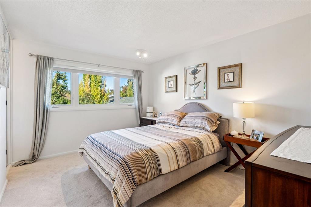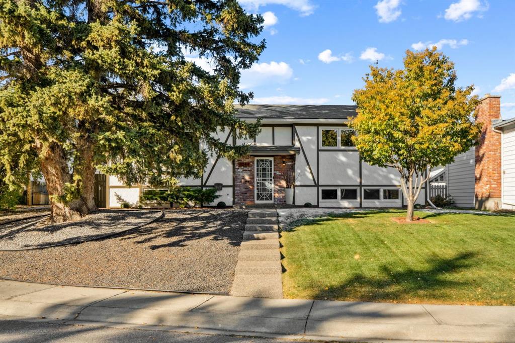 Highly desirable Tudor style bilevel home in a fantastic cul-de-sac location with island green space in Canyon Meadows. Welcome to this charming updated home featuring 4 bedrooms, 2.5 bathrooms, gorgeous West back yard, RV parking, double garage, mature landscape on an large 6899 square foot lot. This home has had all the important upgrades completed in the last 10 years. Air Conditioning (2023), Electrical panel upgraded & relocated, East gate for RV parking, North fence, sod and gravel (2022), Furnace, back door steps/landing, aggregate poured patio & walkways front & back, garage overhead door, 3 toilets and West fence (2021), 13 new windows with basement egress except one (2015-2020), Hot Water tank (2019), paint (2018) and prior owners replaced roof shingles on the house & garage, the copper wiring, the water pipes, carpet & trim (2008- 2015). The main level features a bright kitchen with teak cabinets, Corian counters, built in sub zero fridge, adjacent formal dining room, main level laundry, two bedrooms and two full bathrooms. Two of the bedrooms are currently one large bedroom but can be converted back to two bedrooms easily - making it a three bedrooms on the main level. The basement offers a retro style retreat with sit down bar, recreation room with electric fireplace, many built ins for storage, two more bedrooms, a den with a small window, a storage room which was previously the laundry room and a separate utility/furnace room with newer upgraded electrical panel that can accommodate an EV charger in the garage. A gorgeous back yard oasis with mature trees, shrubs and large aggregate patio area that awaits your outdoor enjoyment. A solid meticulously maintained home in a quiet cul-de-sac location with greenspace view, walking distance to elementary schools, junior & high school close by, a strip mall, bus stop, LRT station and major routes for easy commute around the City. This idyllic home awaits a new family offering peace, relaxation, functional spaces, recreation with a connection to nature in Fish Creek park in Canyon Meadows - one of the most desirable neighbourhoods in Calgary. Don\'t miss this fantastic opportunity!