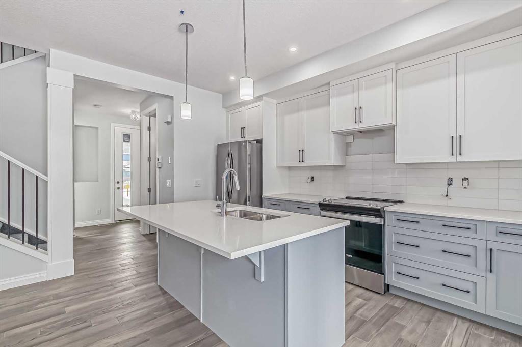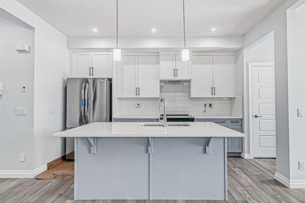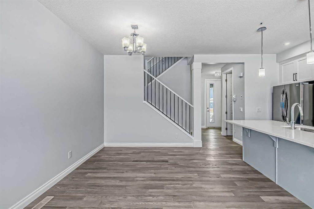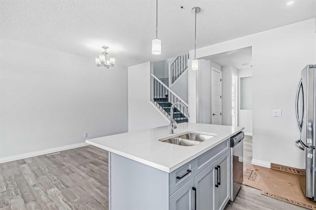 WOW ! A brand new home by Douglas Homes- Master Builder. Located one block from the new park that has been put into Southbow Landing. Thinking you may need a little bit more space ? Why not upgrade to this beautiful attached property- The Canberra ! With a generous almost 1500 worth of square footage, this home is sure to impress. This home provides 3 bedrooms, 2.5 bathrooms, a main floor bedroom or office for a perfect floor plan. The Douglas Homes kitchen comes standard with Quartz countertops on both the main floor kitchen, and the upstairs bathrooms. What an upgrade ! What really sets this home apart is the main floor office, isn\'t that handy ? As you go upstairs, the large window going up the stairs brings in lots of natural light. It\'s one of our favourite features of this home. Once upstairs, you will find 3 large bedrooms, and a walk in, full size washer and dryer with room for storage. The upstairs primary bedroom is spacious, and has a walk in closet, and even double sinks in the primary ensuite. This home doesn\'t even feel like a semi detached property, if you can believe it ! On the way to the basement you will find a side entrance which is perfect for a possible mortgage helper ( with approval from Rocky View County ). This home is ready in about six months and it can be yours this spring, and the best part is you have enough time to choose your palette of colours/finishings. Photos are from prior build & are reflective of fit, finish & included features. Note: Front elevation of home & interior photos are for illustration purposes only. Actual elevation style, interior colours/finishes, & upgrades may be different than shown & the Seller is under no obligation to provide them as such. Directions: Come to the Show Home first located at 115 Southborough Crescent. Show Home hours to view. This home is under construction
