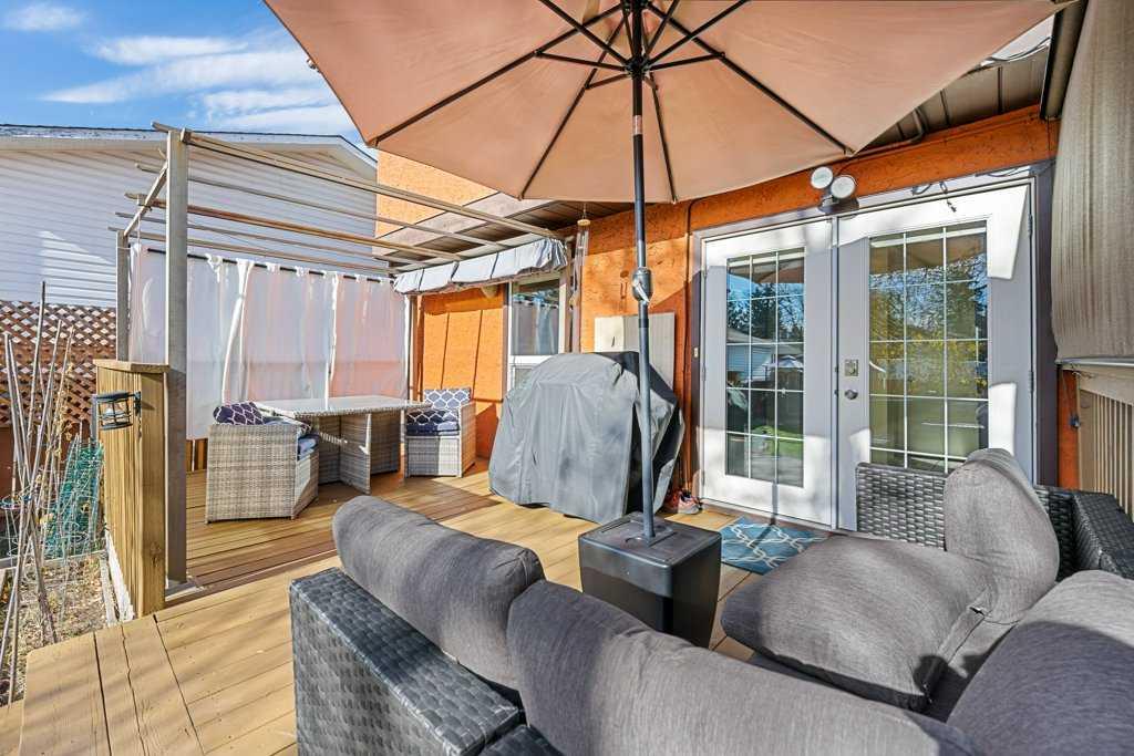 Nestled in a private cul-de-sac only steps from the LRT, this desirable Shawnessy 2 storey home boasts over 1500 sq. ft. of total space, complete Central A/C, plus a finished basement! Be drawn into the spacious living room with large windows that flood the area with natural light! Hardwood floors adorn this area. The bright open kitchen is complete with updated cabinetry and newer stainless steel appliances. The eat-in dining area is complimented by the large windows that give sunny views of the \"south-facing\" tranquil oversized backyard! The rear deck is large and perfect for entertaining or simply enjoying the sunshine. Ascend to the upper level, complete with the primary master suite, plus two adjacent bedrooms. A 4 piece bathroom completes the upper level. The basement is finished with a family room - tastefully cozy and inviting, plus a large storage and laundry area. Flooring is engineered hardwood. Enjoy being a few steps from the LRT, plus close proximity to Fish Creek Park. Within walking distance to Shawville (grocery stores, theatre, pubs, restaurants, health care services). A healthy lifestyle awaits you...no need to own a car!