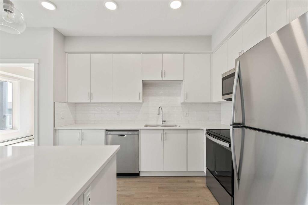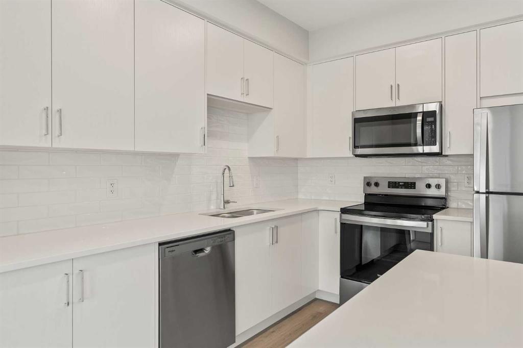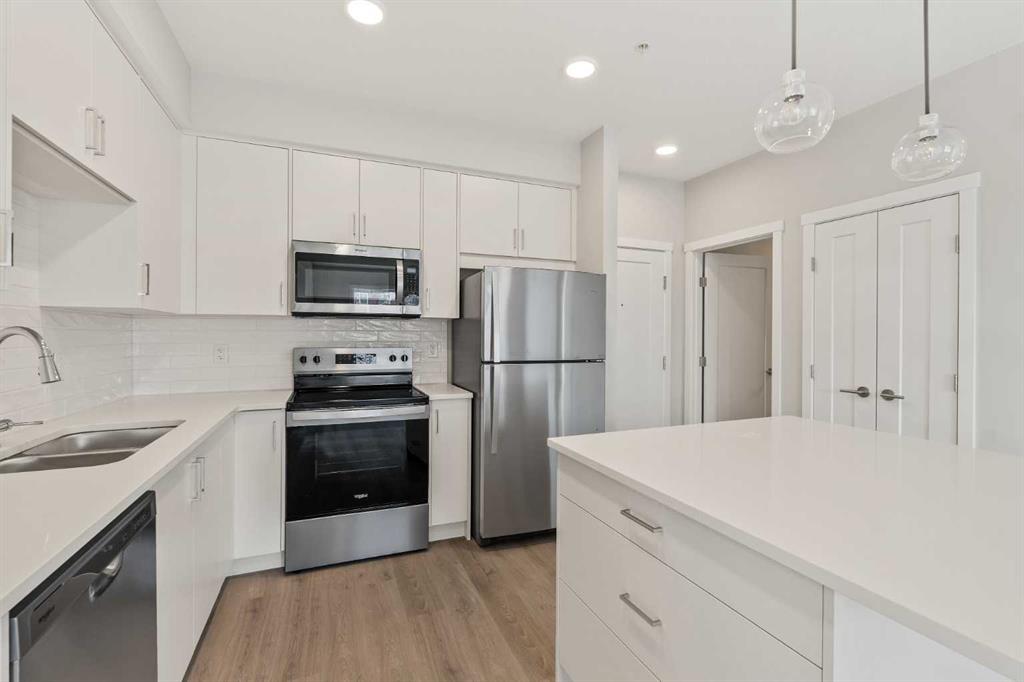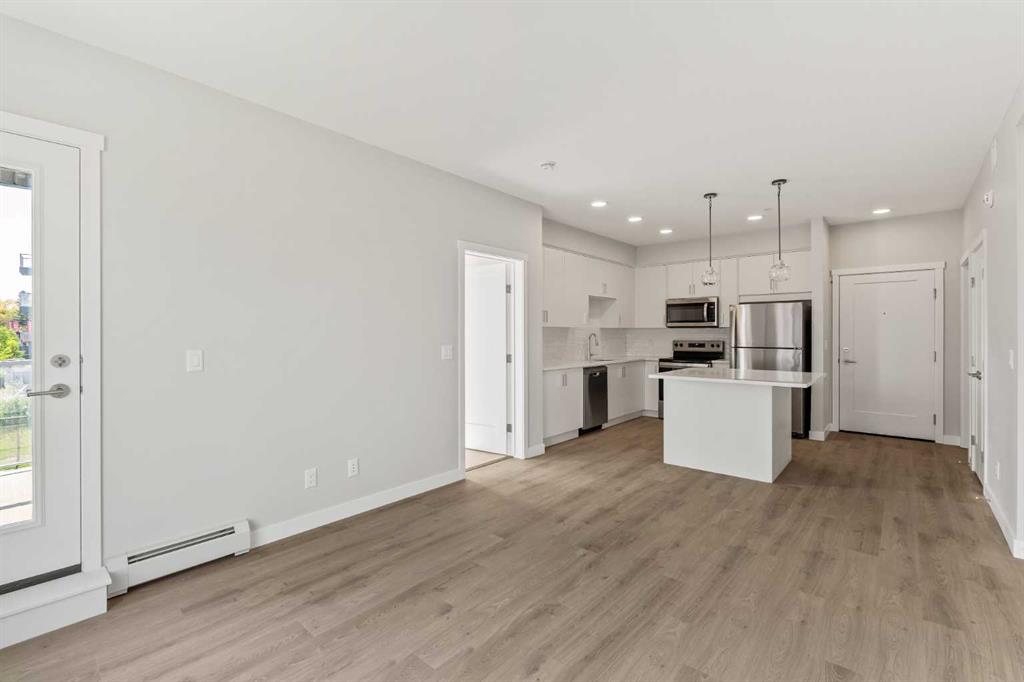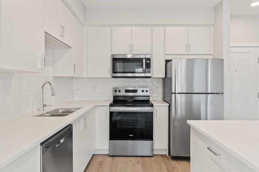 Welcome to your brand-new home in Shawnee Slopes, where modern design meets everyday comfort. This stylish 2-bedroom PLUS DEN, 2-bathroom condo in the 2025 Fish Creek Exchange development offers 839 sq. ft. (builder size) of smart, functional living space. Inside, you’ll find high ceilings, luxury vinyl plank flooring, and a beautifully designed kitchen with quartz countertops, full-height cabinetry, and stainless steel appliances — the kind of kitchen that makes cooking feel effortless. The open layout flows seamlessly into the private north-facing balcony, a perfect spot to unwind with morning coffee, enjoy summer evenings, or take in Calgary’s signature sunsets. Every detail has been considered for convenience and ease, including titled underground parking and a secure storage cage. Located just steps from the Fish Creek–Lacombe LRT Station and minutes from Fish Creek Provincial Park, you’ll enjoy the best of both worlds — city connectivity and nature at your doorstep. Whether you’re a first-time buyer, an investor, or someone looking to simplify without compromise, this home offers a refreshing balance of style, function, and lifestyle in one of Calgary’s most sought-after communities.