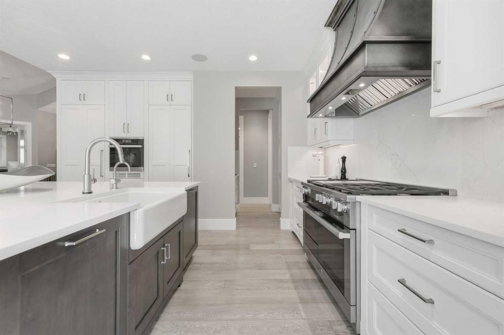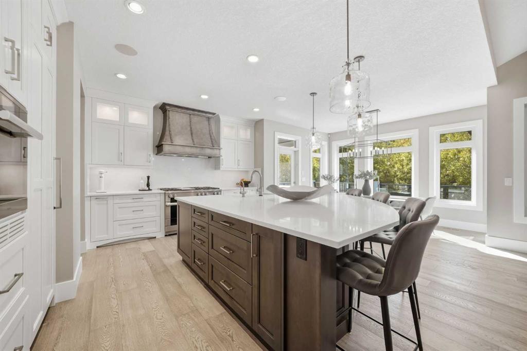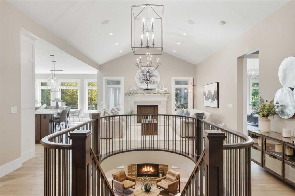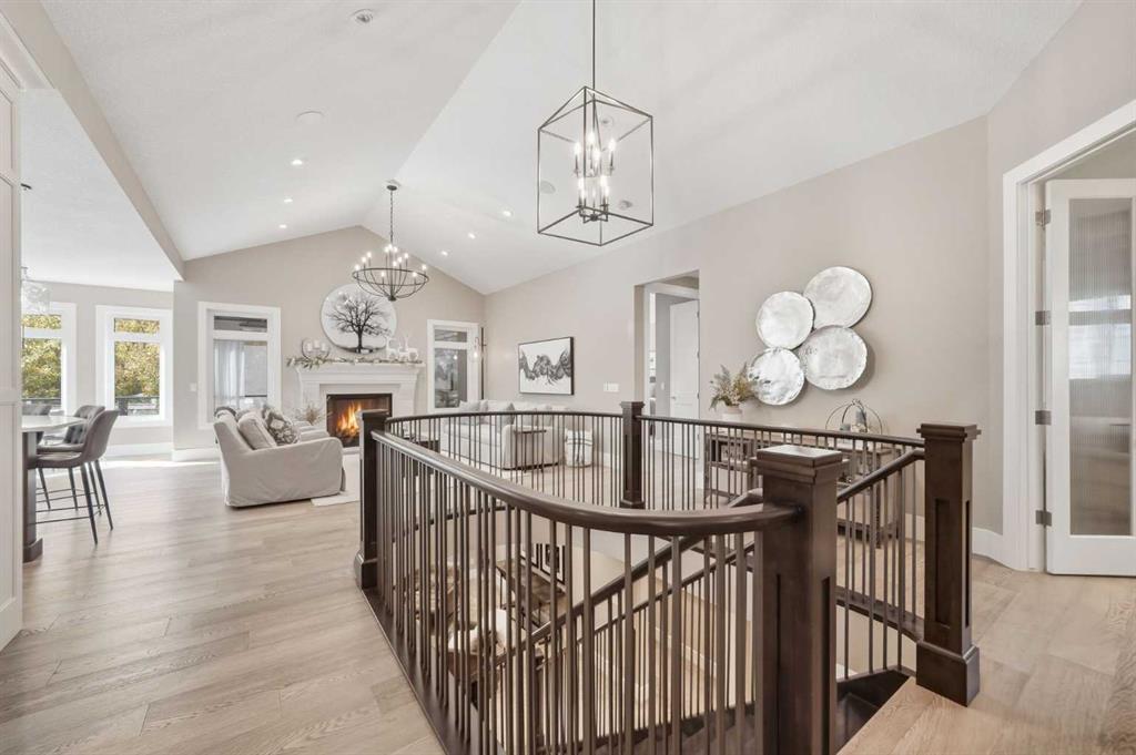 Welcome to this exceptional family acreage retreat in the peaceful community of Eagle Bend Estates, set on nearly 3 acres of beautifully landscaped grounds just minutes south of Calgary. This stunning 3+2 bedroom, 4.5 bath bungalow combines timeless design, quality craftsmanship, and modern comfort—perfect for families seeking space, serenity, and connection to nature without sacrificing convenience. Step inside to discover a warm, inviting main level featuring over 2,400 sq ft of thoughtfully designed living space. Vaulted ceilings and large windows flood the open concept great room with natural light, complementing hardwood floors and a striking feature fireplace that anchors the space. The gourmet kitchen is the heart of the home—designed for family gatherings and entertaining alike—with sleek quartz countertops, a large centre island, built-in appliances including a Miele steam oven, and a fully paneled fridge and freezer for a seamless custom look. Adjacent to the kitchen, the spacious dining area and sunroom open to a covered patio for effortless indoor-outdoor living. The primary suite is a peaceful retreat with a generous walk-in closet and a luxurious ensuite featuring a soaker tub, steam shower, and dual vanities. Two additional bedrooms (one currently used as an office) on the main level share a stylish 3-piece bath, while a well-planned mudroom and laundry area enhance everyday functionality. The fully developed lower level expands the living space with a large family and games area, wet bar, media room, two additional bedrooms each with a private ensuite—ideal for teens or guests. Comfort and quality are found throughout with central A/C, built-in sound, and abundant storage. Outdoors, this property truly shines. A paved lane leads to the home, framed by mature trees and meticulous landscaping. The oversized triple attached heated garage boasts 14-foot ceilings—perfect for large vehicles, hobbyists, or additional storage. A covered deck with infrared heaters, outdoor speakers and custom outdoor kitchen with BBQ oven and built-in grill create an ideal setting for outdoor entertaining. The nearly 3-acre lot includes gutter guards on the house, manicured lawns, a hot tub, greenhouse, and a sport court supplied by its own dedicated well, separate from the domestic well serving the home. Designed for families who love to live, entertain, and play, this property balances practicality with luxury. With underground sprinklers, thoughtful irrigation, and ample space to enjoy every season, it offers true country living with city convenience just minutes away. Located in a friendly, sought-after community close to schools, shopping, and major routes, this home provides the perfect blend of rural tranquility and urban accessibility. A rare offering where quality, comfort, and lifestyle come together—welcome home to Eagle Bend Estates.
