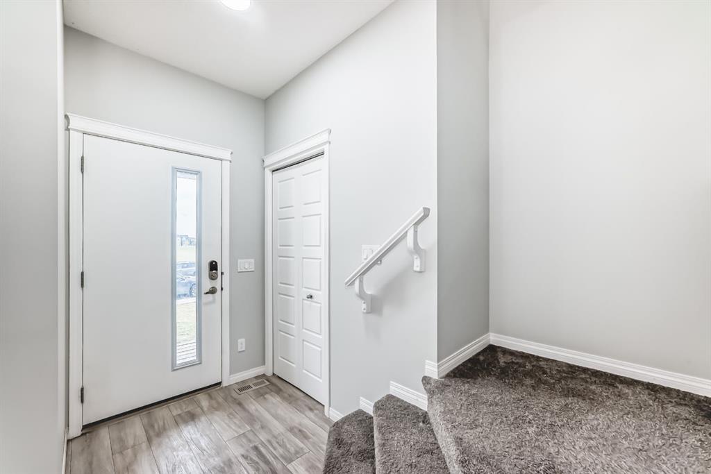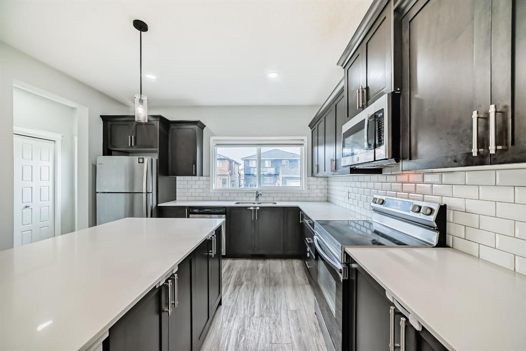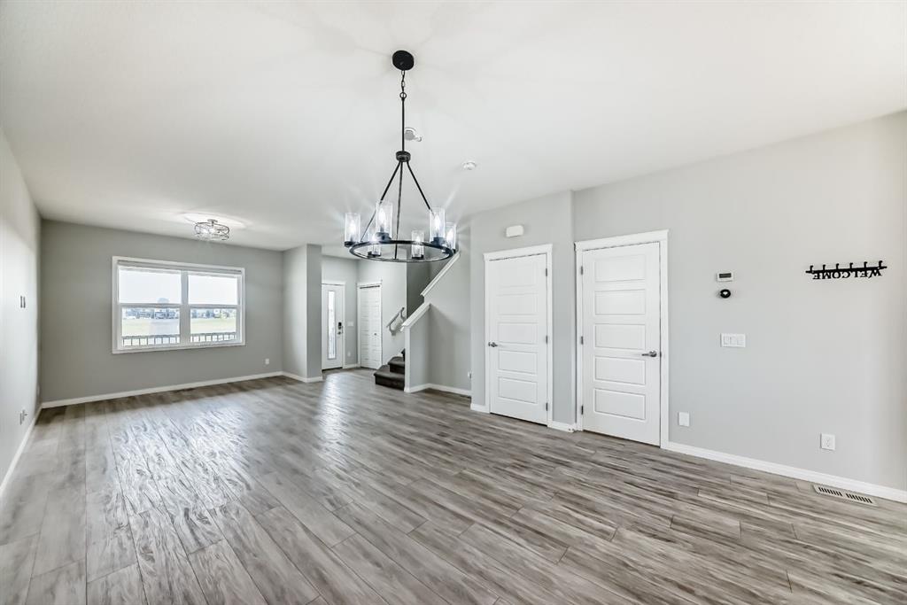 chef-inspired kitchen with a stunning center island, stainless steel appliances, and a large pantry. Beautiful cabinetry with clean, modern look. Stainless steel appliances for a stylish touch. Large pantry for all your storage needs Bright, wide window flooding the space with natural light. Upper-Level Comfort- 3 spacious bedrooms + a versatile bonus room, Primary room with a 3-piece ensuite & walk-in closet. Additional common bath for convenience. Unfinished Basement – Endless Potential! 9-ft ceilings for a spacious feel, Separate exterior entrance. Two egress-sized windows for natural light & safety. Rough-ins for a future bathroom – customize to your needs. Prime Location & Unbeatable Convenience! Steps from playgrounds, shopping & the new Chalo FreshCo Plaza. 5 minutes to CrossIron Mills Mall. 10 minutes to Calgary International Airport. Quick access to Deerfoot & Stoney Trail – easy commuting! This gem won’t last long! Book your private showing today!