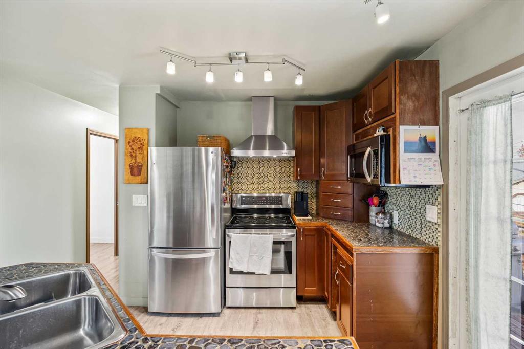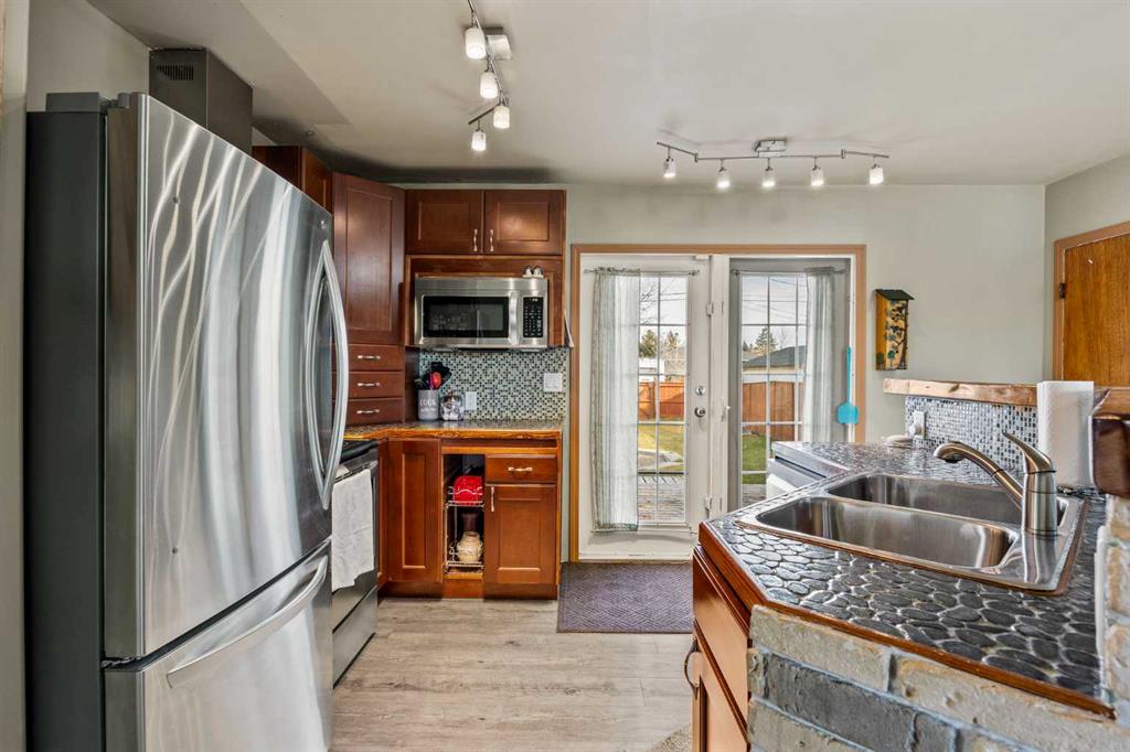 50\' X 127\' Lot with R-CG Zoning. Redevelop, rent or relocate to this convenient location just steps to schools, shopping, forest lawn athletic park, and 15 minutes to downtown Calgary. This charming bungalow has been lovingly cared for and updated throughout. The main floor offers an open concept floor plan with plank flooring throughout, an updated kitchen, stainless steel appliances (estimated 2017), island with eat up bar and electric fireplace with brick facing, a bright living room with a big bay window and the dining room has a built-in table with adjustable sizing. There are 3 bedrooms, making it easy for the whole family to be on one floor. The full bathroom has an updated vanity with ample counter space, subway tile and wood slat ceiling. The basement is partly finished with a 2nd full bathroom, laundry room, and side entry for easy access to the basement. There is a double detached garage and large yard. Windows, insulation and electrical were updated in 2017. Roof updated 2020. Book your showing today!