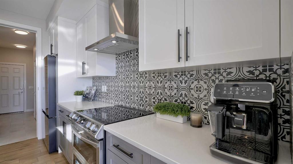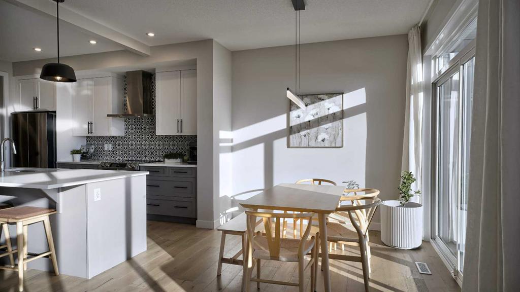Designed for modern living, this home features 9-foot ceilings on both the main and lower levels, a vaulted foyer, engineered hardwood flooring, and oversized windows that fill the home with natural light. The gourmet kitchen showcases quartz countertops, a 9’6” island, a walk-through pantry, a coffee bar with wine fridge, and stainless steel appliances. The bright and inviting family room centres around a cozy fireplace — the perfect spot to relax and unwind — while a versatile flex room with French doors makes an ideal office or playroom.