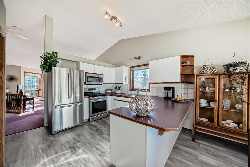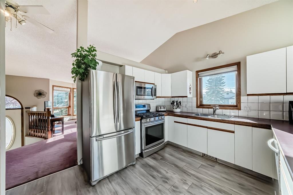 Step inside to soaring vaulted ceilings and a light-filled main floor that feels open and airy. The spacious kitchen features vinyl plank flooring, stainless steel appliances, and a skylight that brings in plenty of natural sunshine — perfect for busy mornings or cozy family dinners. The bright and inviting living room is perfect for visiting with guests or simply curling up with a good book. You’ll love the main floor laundry, renovated 4-piece bath, and the primary bedroom with a refreshed ensuite and his & hers closets. There is also a convenient large 2nd main floor bedroom just down the hall.