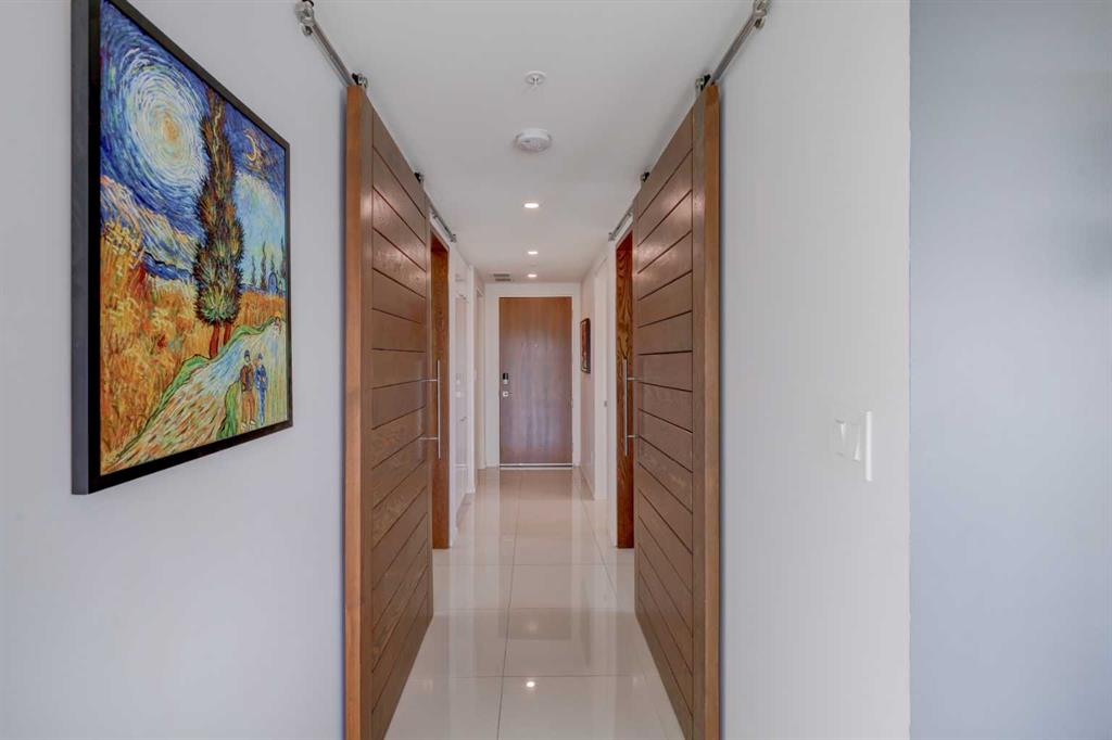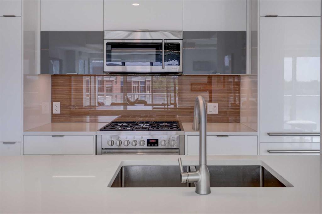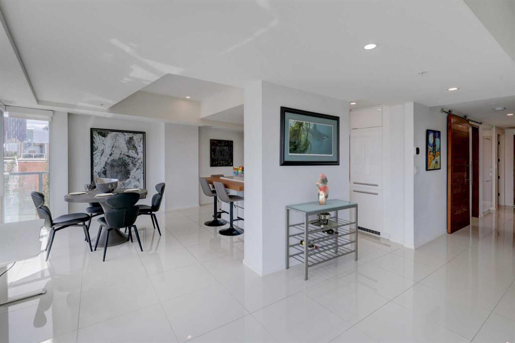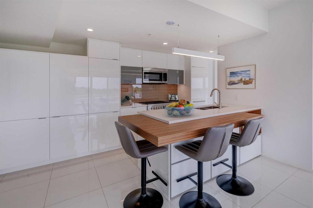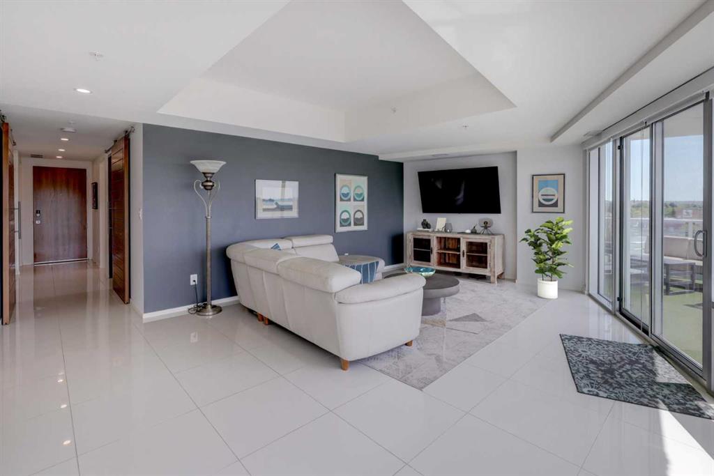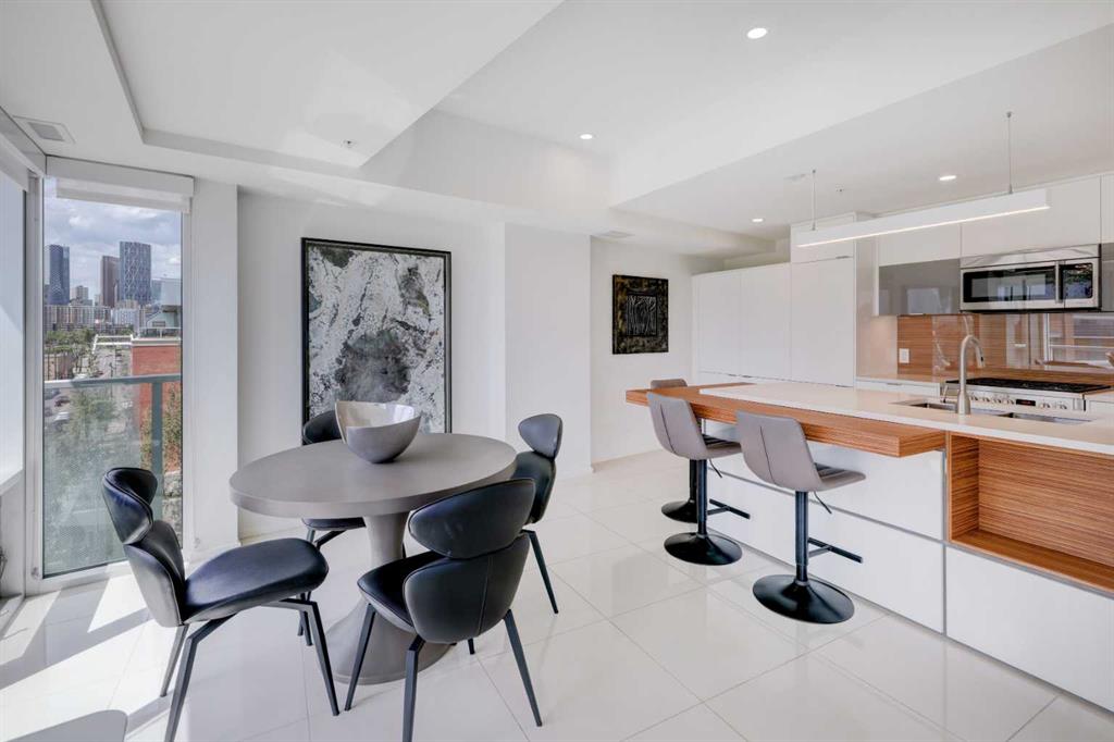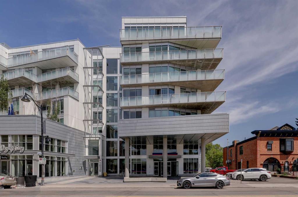 Welcome to unit 601, a stylish 1250+ sq ft sub-penthouse in the modern Avli On Atlantic- a very sleek building in historic Inglewood, steps to great shopping, excellent restaurants, cool pubs and an easy walk to the Bow Valley pathways, Fort Calgary,The Saddledome and downtown. This large 2 bedroom, 2 bathroom, 2 titled parking stall unit features a wall of windows flooding the main living space with natural light, architectural touches - cove ceilings, concrete pillar, gleaming tile floors and custom roller blinds. The European style kitchen has ample counter space, built in pantry, integrated dishwasher & fridge, additional cabinets and an extended quartz island with wooden accent, all over looking the dining and main living area, perfect for entertaining. Dual sliders open to the large 300+ square foot wrap around patio (with n-gas hook up) where you have stunning views of 9th Avenue, Ramsey, Inglewood and downtown. The large primary bedroom has modular storage cabinets and a 4 piece ensuite with floating dual vanity & heated floors, an excellent retreat. This unit has it all including ensuite laundry and storage, additional large storage locker, secure bike storage, visitor parking, guest suite and common furnished terrace (3rd floor) for larger get-togethers. The building is very well taken care of and the location is supreme.