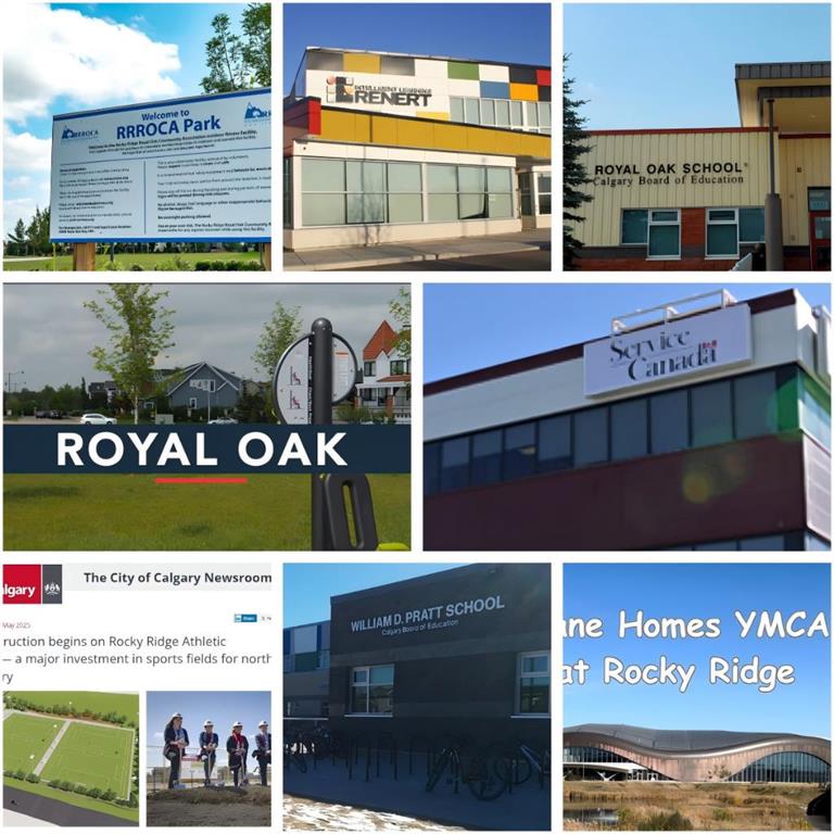 Open House 1:00-4:00pm Saturday Oct 18th. Location, Location, Location! This is undoubtedly one of the best locations in the entire complex—backing onto a beautifully treed courtyard with a BBQ pit and gazebo and front facing a huge green space with scenic mountain views. Step into this stunning 4-level split townhouse and experience an open-concept design that offers an abundance of natural light and a bright, airy ambiance. Imported hardwood floors flow throughout the main living areas, enhancing the sophisticated feel of the home. The living room features soaring 12-ft ceilings, a cozy gas fireplace, and French doors that lead to your private, fenced East-facing yard—perfect for morning coffee or relaxing in the sun. Adjacent to the kitchen, the spacious dining area opens to a West-facing balcony with a stylish pergola and gas BBQ hookup, ideal for evening entertaining. The kitchen is equipped with stainless steel appliances, a built-in wall oven, and a sleek countertop stove—a dream for any home chef. Upstairs, you’ll find two generously sized primary bedrooms, each with its own walk-in closet and private ensuite, offering comfort and privacy for all. Additional highlights include Single attached garage, insulated and finished. Heated main floor entrance. Ample storage in the partially finished basement. Recent upgrades: new refrigerator, microwave hood fan, and light fixtures (2025). This is a well-run complex, ideally situated within walking distance of both Royal Oak School (K-3) and William D. Pratt School(4-9), Renert School (K–12)Tied for first place: Rundle College and Webber Academy in Calgary ,with Royal Oak Plaza ( Walmart, London Drugs , Sobeys, A-Mart, Shoppers Drug Mart) playgrounds, and transit just steps away. You’re also minutes from Shane Homes YMCA and will soon enjoy the brand-new Rocky Ridge Athletic Park, opening Fall 2026. With easy access to Stoney and Crowchild Trail, this location makes commuting a breeze—whether you’re heading downtown or west to the mountains. This is a fantastic opportunity to own in one of NW Calgary’s most desirable communities.
