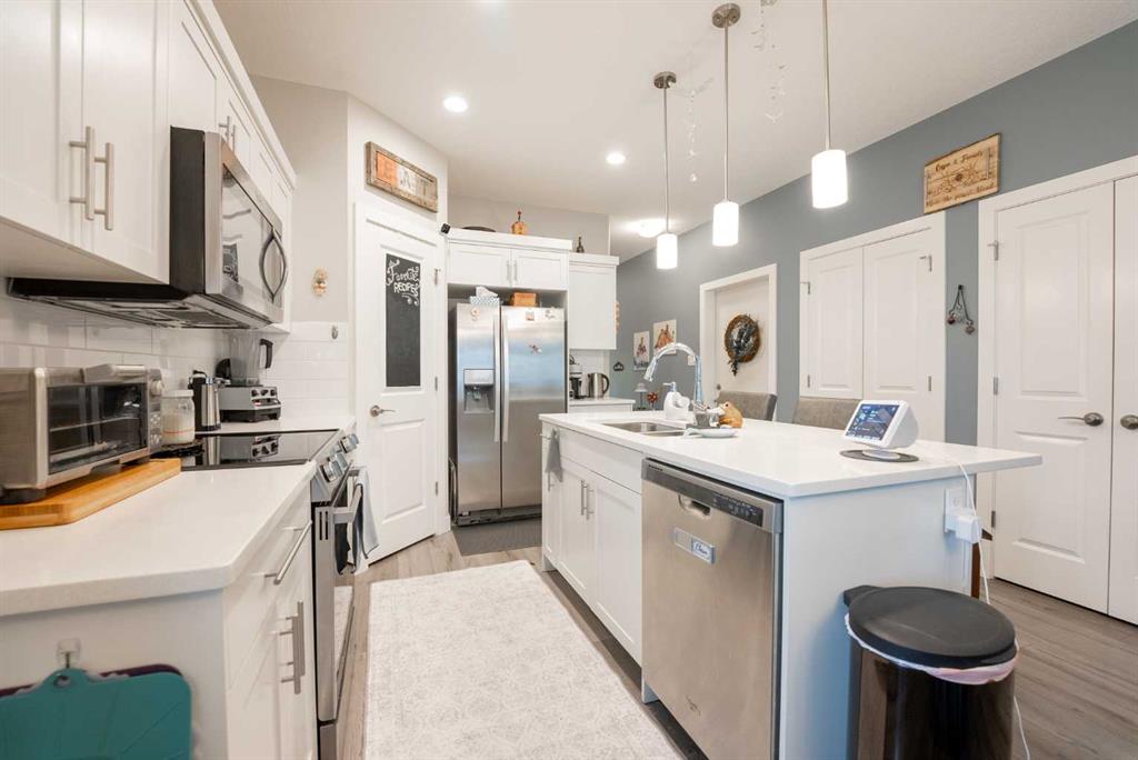 Step inside to a bright, open main floor featuring a modern kitchen with quartz countertops, stainless steel appliances, corner pantry, and a spacious island - perfect for entertaining. The dining and living areas flow seamlessly together, centered around a modern gas fireplace for cozy evenings in. The primary suite offers a walk-in closet, a beautiful ensuite with a soaker tub and separate shower, plus the convenience of main-floor laundry.
