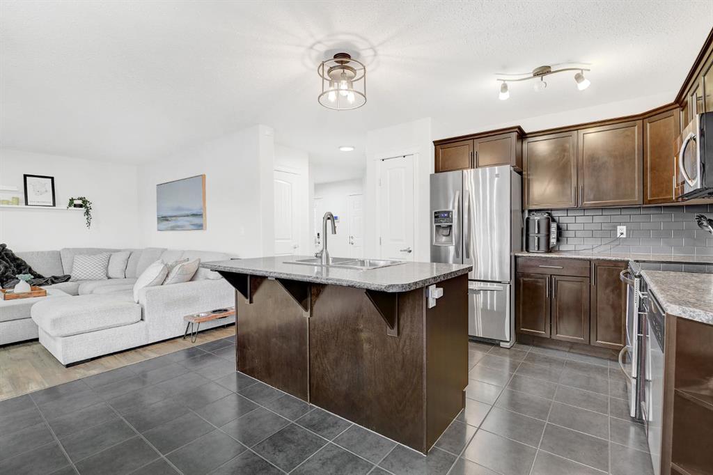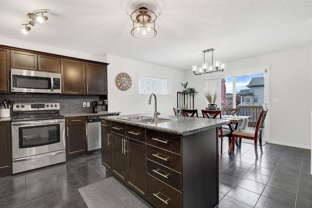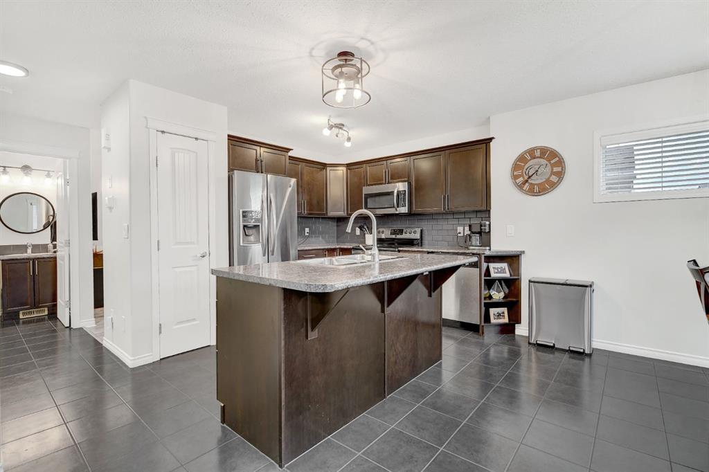 This like-new 2-storey home has been exceptionally maintained and upgraded throughout. The spacious kitchen features dark cabinetry, a corner pantry, charcoal tile backsplash, center island, and stainless steel appliances. The dining area offers access to a south-facing backyard through sliding patio doors. Bright and inviting living room with large windows, a gas fireplace, and a main floor office/den.