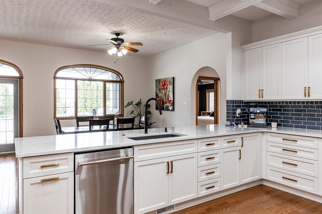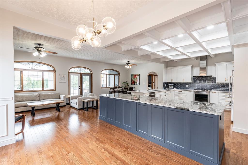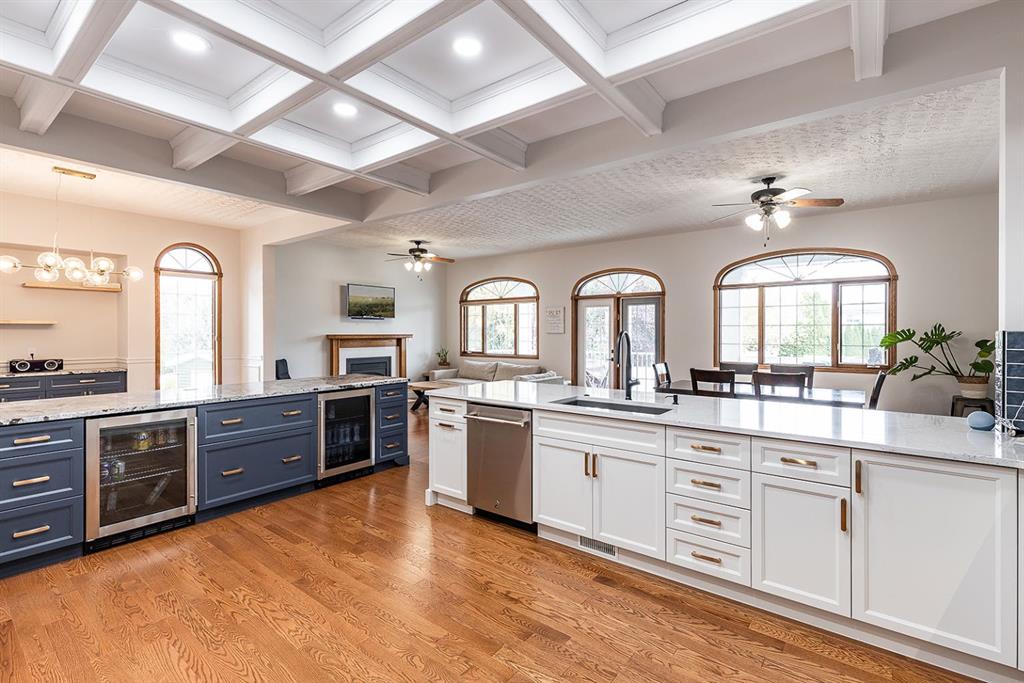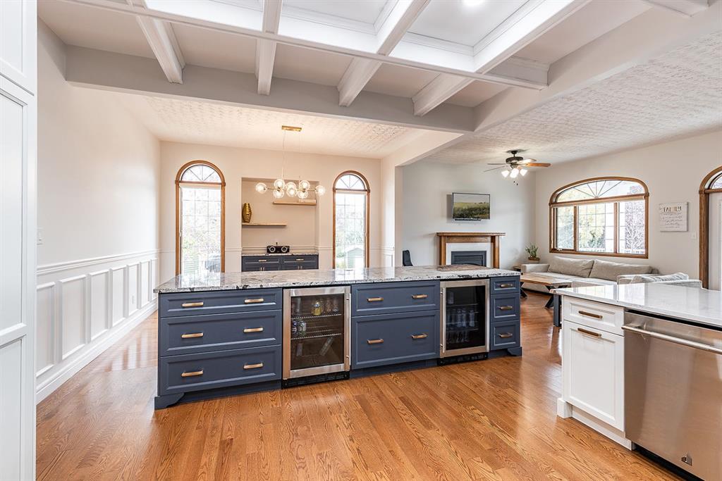 This executive-style walkout bungalow sits on an impressive 12,000 sq ft lot in a quiet court, offering both luxury and comfort inside and out. Beautifully renovated throughout, the home features a chef’s dream kitchen with Jenn-Air appliances, an expansive island complete with bar and wine fridges, and an open-concept main floor that flows effortlessly through the living room, flex space, and large dining area—ideal for entertaining or everyday living.