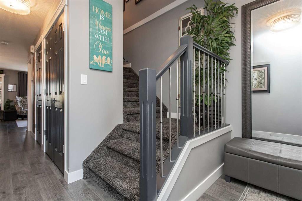 Welcome to 82 Arthur Close a beautifully upgraded home showcasing exceptional style and thoughtful design throughout. The kitchen is a true showpiece, featuring new charcoal cabinetry with glass display, under-cabinet lighting, a walk-in corner pantry with spice organizer, granite sink, pull-out drawers, and a large island with extra storage. You\'ll love the new stainless-steel LG convection range with air fry, GE Profile fridge, and Samsung 3-level dishwasher. The living room offers laminate flooring, up/down blinds, and a remote ceiling fan for comfort. Upstairs, the luxurious bathroom includes a heated porcelain tile floor, live-edge wood vanity, matte black fixtures, a 5\' tiled shower with rain head, and a heated/lighted toilet seat. The primary bedroom impresses with a shiplap ceiling, board and batten feature wall, remote zebra blinds, \"Fandelier\", and custom his-and-hers closets. Two additional bedrooms are equally well-finished with custom closets and designer details. A convenient upper laundry area features built-ins, pull-out hampers, and a live-edge folding counter. The basement adds even more versatility with laminate flooring, wet bar, full bath, and a walkout with new door and side light. Outside, enjoy low-maintenance xeriscaping, a golf-green lawn area, two-tier deck with gazebo, two sheds, and RV parking. The attached single garage is insulated and heated with 220 V power. Additional updates include new shingles (4 yrs), upgraded attic insulation, 2.5 ton central air, newer water heater, humidifier, and keypad entries with high-tech front and rear cameras. Stylish, functional, and move-in ready this home offers it all!