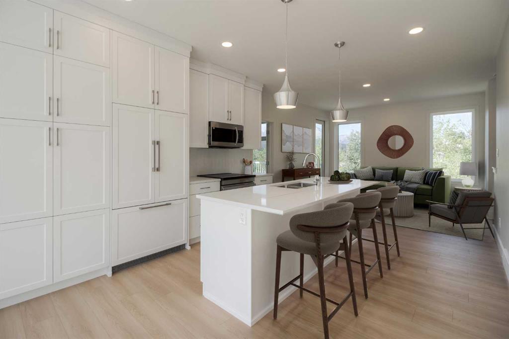 Welcome to the Aspen model by Stranville Living Master Builder! Located in the Coleman, Alberta community of Aurora, this home is perfect for a wide range of buyers, including first-time homeowners, empty-nesters, vacation home buyers, and growing families. Nestled on the northern edge of Coleman, the community of Aurora boasts breath-taking southern views of the Rocky Mountains, including among others, Chinook Peak and Turtle Mountain. The orientation of this 1,635 square foot home, which faces directly east, provides a stunning landscape view to the west from the primary bedroom and private balcony. This model includes three bedrooms, 2 bathrooms, and a 26\' wide attached double-car garage. The kitchen is equipped with Stranville Living\'s top-tier appliance package, including a seamlessly integrated Fisher & Paykel fridge, paneled dishwasher, slide-in induction range and electric oven, and an OTR microwave with fan. It is designed with nicely appointed cabinets extended to the ceiling, fully-tiled backsplash, and quartz countertops for the base cabinets and island. The large primary bedroom is conveniently located on the main floor and the massive walk-in closet with laundry connects to the ensuite bathroom. Upstairs, you\'ll find two more bedroom and a dedicated 4-piece main bathroom. Once again, Stranville\'s award-winning design team has finished this home beautifully inside and out. The James Hardie fiber cement siding and exterior accents really make this home stand out in the backdrop of this mountain setting. High-efficient mechanical equipment, Low E windows, and spray foam in the rim joists help keep your heating and cooling costs in check. Must be seen to be appreciated! Photos may contain virtual staging.