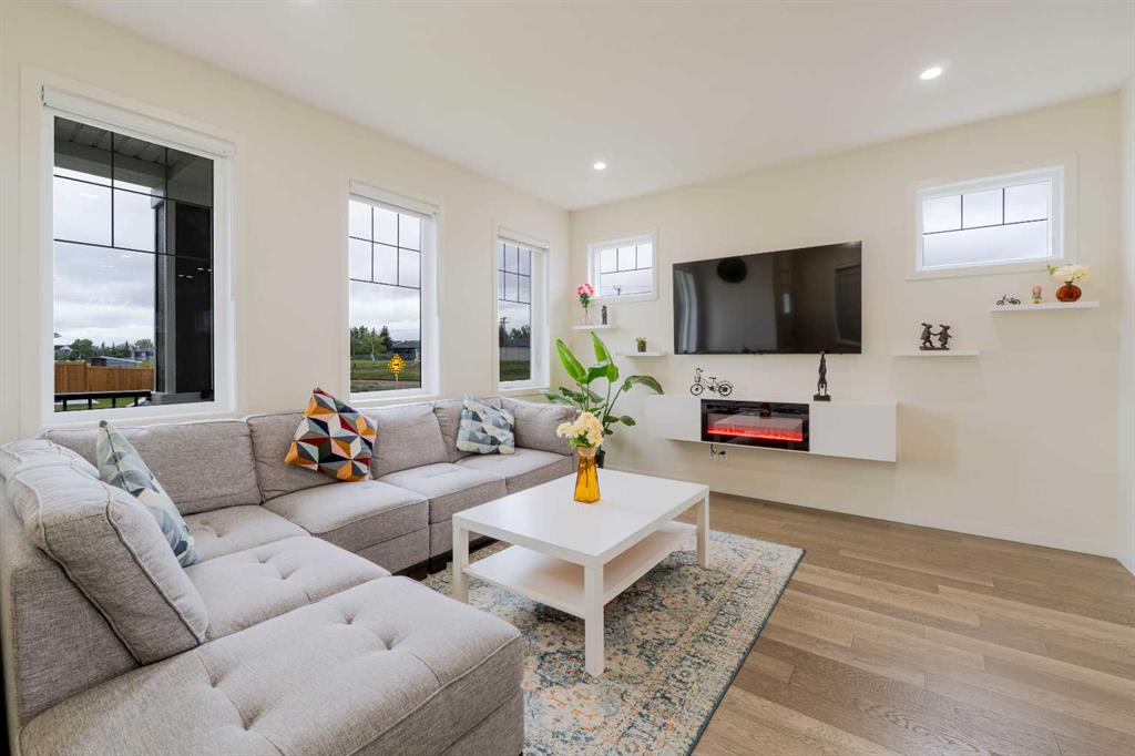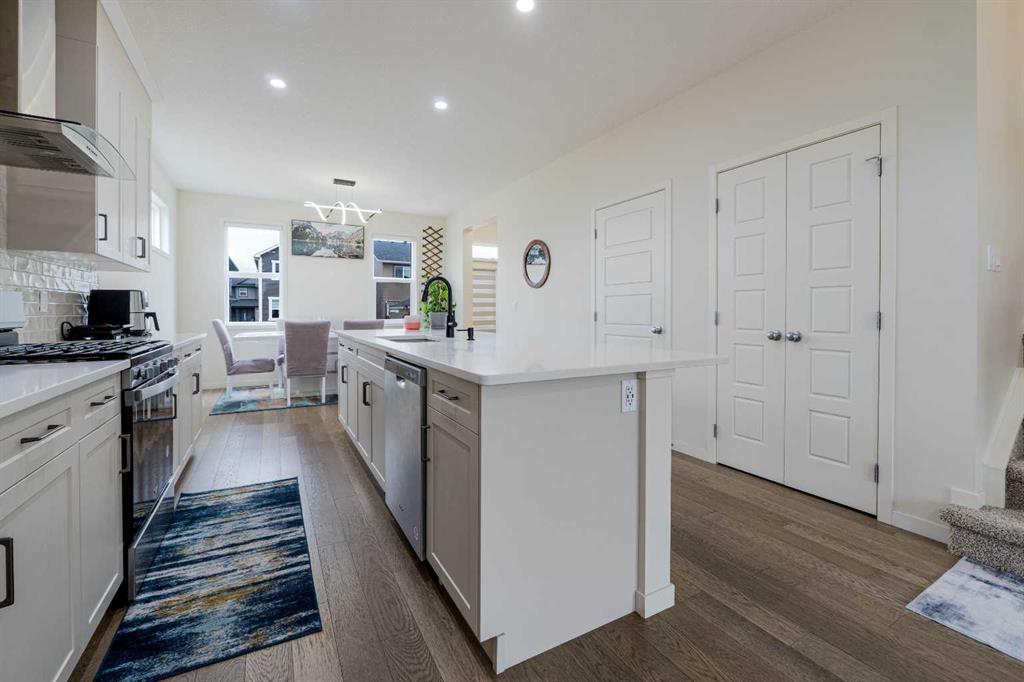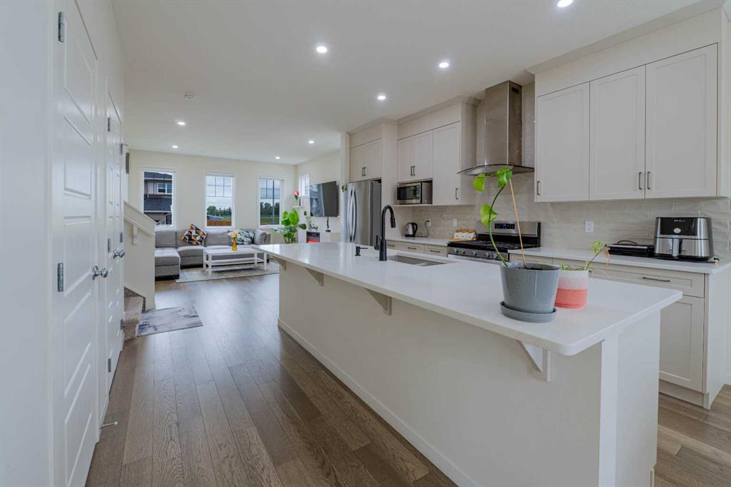 BEST PRICE IN MIDTOWN WITH UPGRADED FEATURES | CORNER TRADITIONAL LOT | SEPARATE ENTRANCE TO THE BASEMENT | LOT OF UPGRADES FROM TRICO BUILDER | Welcome to this beautifully designed laned home in the desirable community of Midtown, ideally situated on a rare traditional corner lot next to green area & walking trail with excessive outdoor space at the front, back, and sides—perfect for summer BBQs, family gatherings, or a fun play area for the kids. This beautiful North-facing home offers the perfect orientation for natural light lovers — with abundant sunlight streaming into the backyard from morning to dusk. Whether you\'re enjoying your morning coffee, tending to a garden, or entertaining guests, the sunlit outdoor space creates a warm and inviting atmosphere all day long. Step inside to an inviting open-concept main floor with soaring 9-ft ceilings and an abundance of windows that flood the space with natural light, keeping it bright and cozy all day long. The layout offers a spacious front living area that creates a cozy ambiance, a dining space at the back, and a gourmet kitchen at the center—truly the heart of the home. The chef’s kitchen features ceiling-height cabinetry, a large central island with QUARTZ countertops, premium stainless steel appliances, including a gas stove and hood fan, upgraded lighting with pot lights , plenty of storage & spacious pantry provides additional storage to keep everything organized and within reach. A convenient half bath completes the main level, leading out to a rear deck, a generous backyard, and the concrete pad ready for your future double detached garage. Upstairs, you’ll find three generously sized bedrooms, including a primary retreat with a walk-in closet and private 4-piece ensuite. The two secondary bedrooms are well-sized and share a centrally located full bathroom. All full bathrooms feature upgraded tiles flooring, undermount sinks & timer-controlled exhaust fans. For added convenience, the Whirlpool washer and dryer are also located on the upper level which also features tile flooring. The home also includes a full basement with 9-ft ceilings and a separate side entrance, offering endless potential for future development—whether it’s a legal suite, home gym, or entertainment space. Located in the vibrant, family-friendly Midtown community, this home offers access to beautiful walking paths, parks, a central pond, and is just minutes from schools, shopping, and dining. With quick access to Highway 2, commuting to Calgary is fast and stress-free. This is a rare opportunity to own a stylish, move-in ready home on a corner lot in one of Airdrie’s most sought-after neighborhoods. Make sure to view the virtual tour for a complete walkthrough of the home.