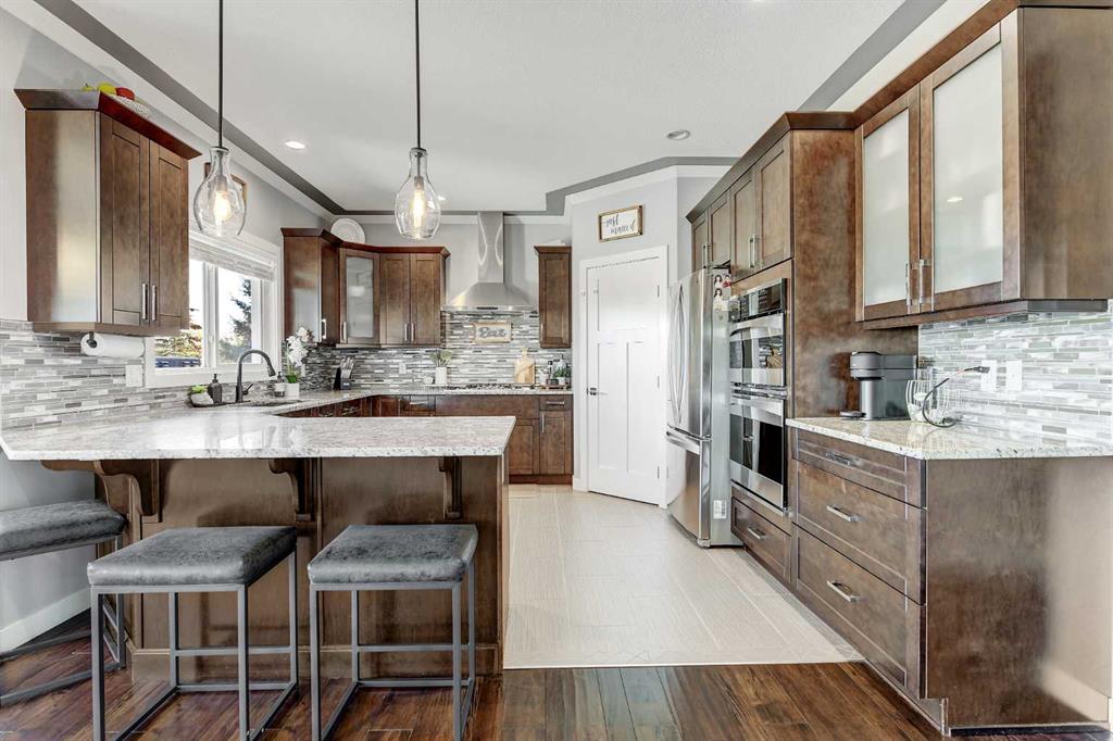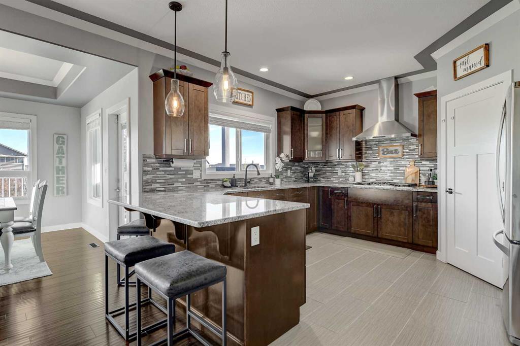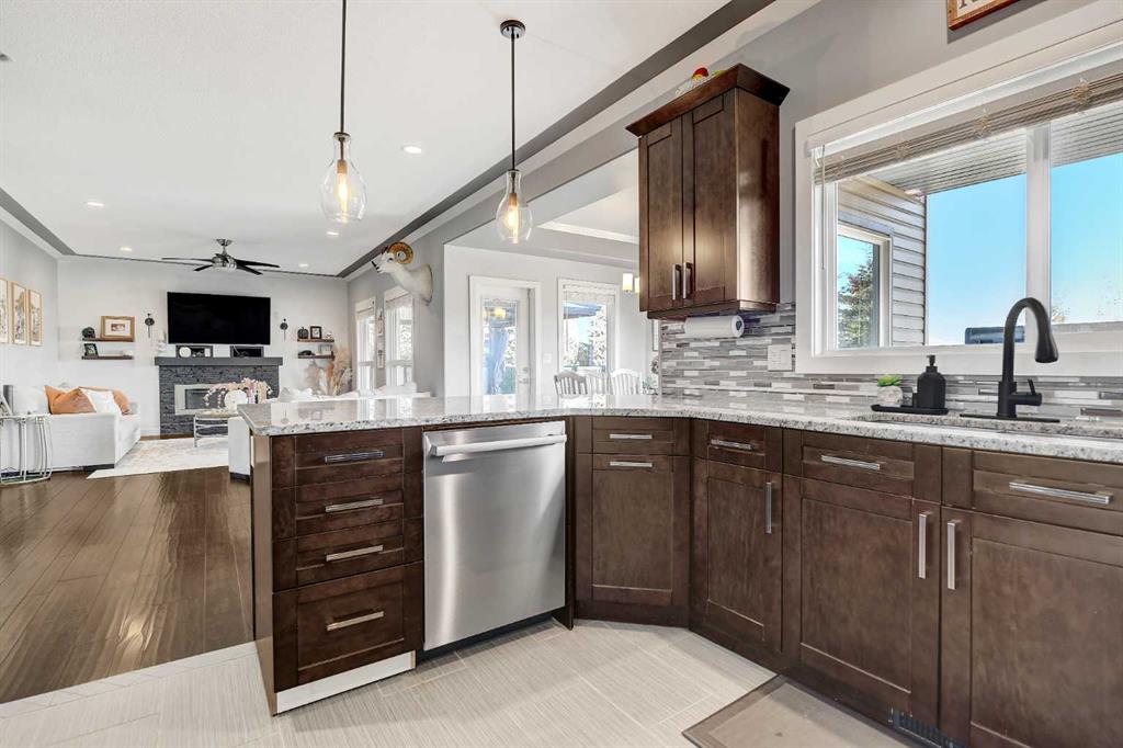 Impressive Executive Home in Carriage Lane! Step into this stunning fully developed 2-story home in prestigious Carriage Lane—offering exceptional craftsmanship, thoughtful design, and an abundance of space both inside and out. The property features a heated 4-car garage with in-floor heat, RV parking, and sits beside a walking trail for added privacy. Inside, the home has been freshly painted throughout, showcasing designer accent walls, engineered hardwood flooring, and an inviting open-concept layout. The front sitting room with elegant glass doors sets the tone for the quality that continues throughout. The large kitchen is a true showstopper, featuring soft-close cabinetry, granite countertops, a gas cooktop, corner pantry, and new dishwasher, washer, and dryer (2025). The adjoining living room offers a warm and welcoming space centered around a beautiful gas fireplace, perfect for family gatherings or entertaining guests. Upstairs, you’ll find three spacious bedrooms, including a luxurious primary suite complete with a spa-style ensuite showcasing a large jacuzzi tub, dual sinks, and a walk-in closet. Step out onto your private covered deck for a quiet morning coffee or evening unwind. The upper floor also features brand-new vinyl plank flooring throughout. The fully developed basement offers 9-foot ceilings, in-floor heat, a comfortable family room, bedroom, full bathroom, and an impressive theatre room designed for ultimate entertainment. Outdoors, enjoy your maintenance-free deck with a covered hot tub area, perfect for year-round relaxation. The fenced yard is beautifully maintained and includes an irrigation system and garden shed. With air-conditioning, hot water on demand, and every detail carefully curated, this home delivers both elegance and functionality. This stunning property truly offers it all—style, space, and sophistication in one of the area’s most sought-after communities. Schedule your private showing today!!