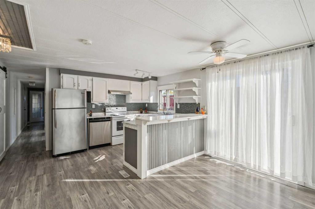 Big Springs Estates is conveniently located close to schools and backs onto a huge green space. Vacant and easy to view. There is a huge living room, a U-shaped kitchen, stainless steel appliances, and a newer washer and dryer. There is a family room addition. Near the rec centre and other amenities. There is a large carport, double decks, large yard and double sheds. A beautiful apple tree in the front yard.