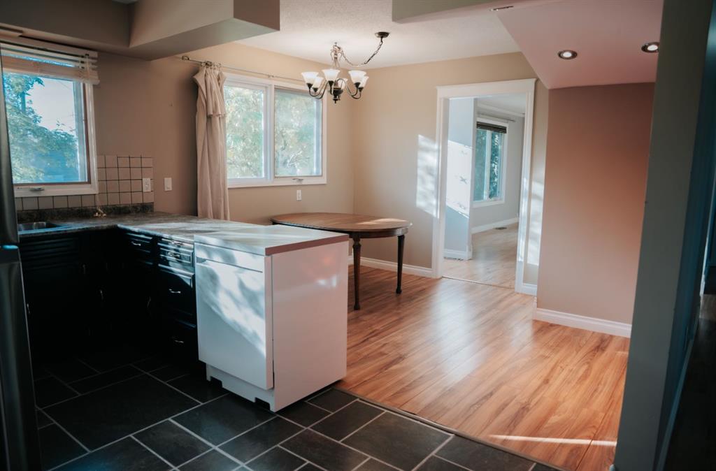 Situated on a generous 8,400 sq ft lot, this charming home offers the perfect blend of functionality, comfort, and location. As you arrive, you’ll appreciate the spacious driveway—ideal for multiple vehicles or storing your holiday trailer. A side gate provides access to the backyard and everyday entry into the home. Step inside through the back porch, a great space for coats and boots, leading into the bright kitchen and dining area. The inviting living room features a large front window that fills the space with natural light and provides a warm, welcoming feel. The main floor hosts a primary bedroom and a second bedroom, both with cozy carpet, along with a 4-piece bathroom featuring tiled flooring. Downstairs, you’ll find a fully finished basement offering a large family room—complete with projector setup—perfect for movie nights, games, or a play area for kids. There’s also a den/office, 3-piece bathroom, laundry area, and ample storage. Outside, enjoy evenings around the well-designed firepit area, tend to your garden, or relax on the treated wood deck. The 24x24 heated detached garage provides excellent parking, workspace, or storage for your hobbies. Just a small section of fencing is needed to fully enclose the north side of the yard, making it ideal for kids or pets. Located just blocks from the public elementary school, splash park, and playground, and within walking distance to Main Street, this home offers small-town convenience with a family-friendly feel. Whether you’re searching for your first home or looking to downsize, this property has something for everyone—plus it’s move-in ready! Don’t forget to explore the 3D Virtual Tour and see why this could be your next home!