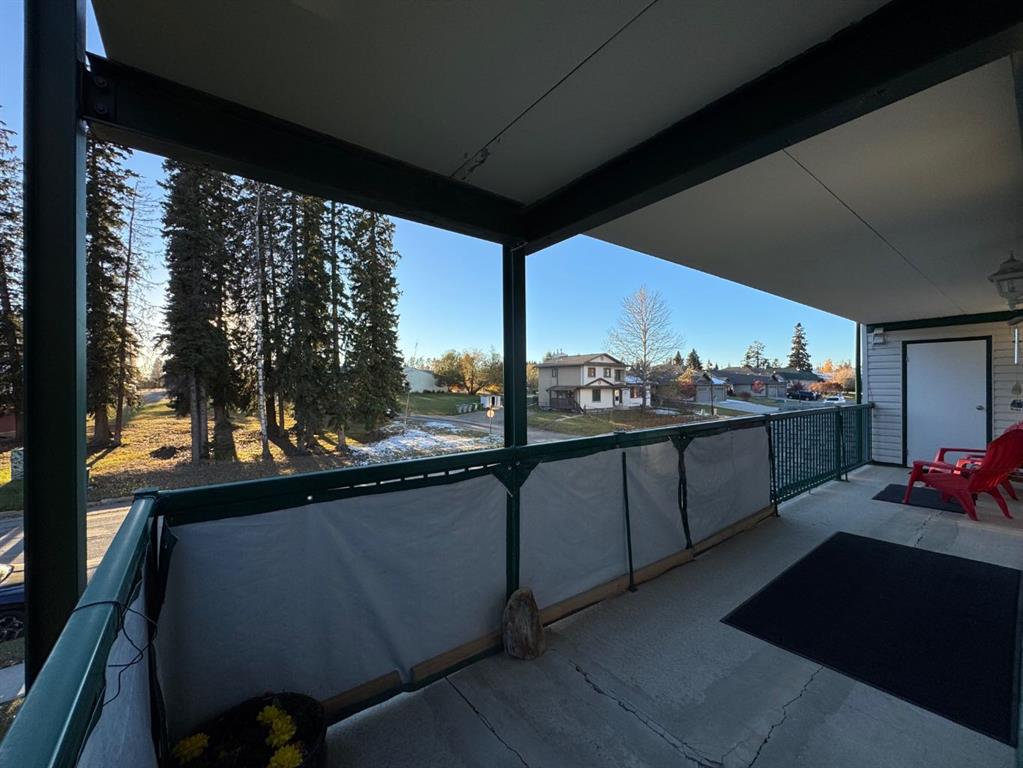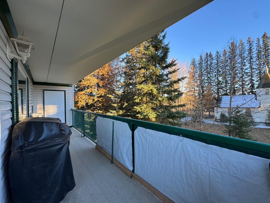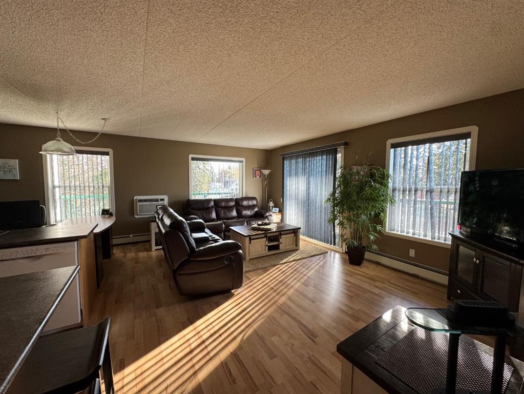 Immaculate CORNER UNIT is a well maintained, and beautifully updated adult oriented condo complex in a convenient central location! This bright and sunny 2 bedroom, 2 full bath condo boasts an open concept floor plan, HUGE wrap around deck with western/southern exposure, gas BBQ hook-up, plus 2 storage rooms accessible on the deck (one at west side, another at south side of deck). The open concept kitchen has ample cabinets/counter space plus an island that any chef would appreciate! Bright dining space and living room, with large windows and sliding patio doors. Wall mounted air conditioning unit installed for those warm summer days/nights. Primary bedroom is a peaceful oasis & features an updated 4 pc bath with jetted tub and shower combo with a light, large closet for your clothes, and a linen closet. Updated laundry room with pocket door and NEWER top of the line front load GE washer & dryer. 2nd bedroom has a closet plus 2 high quality Ikea storage closets that are included. Window coverings and appliances are all included. 2 parking spots (heated underground stall and outdoor stall with power plug). This is a very well maintained and managed building, making this condo a great investment! There is an elevator and 2 spacious common rooms: One entertainment room with a kitchen for larger family gatherings, and one additional space for recreation/relaxing/entertainment. Great central location close to amenities: across from newly renovated library, park, Red Brick Arts Centre. Walking distance to Pioneer Cabin (senior\'s drop in centre), medical centre, walking trails, restaurants, grocery, parks, banks, post office, Leisure Centre/public pool, and more. No more shovelling snow or mowing grass, this condo will offer you a very convenient lifestyle and a place to be proud to call HOME!
