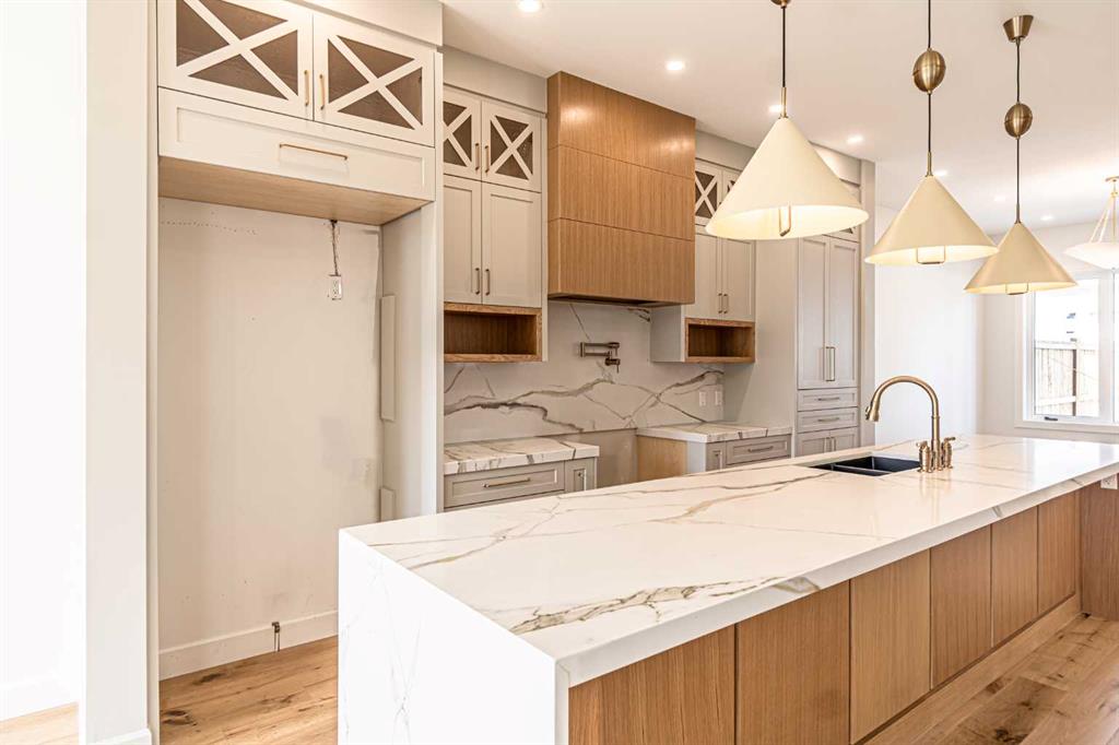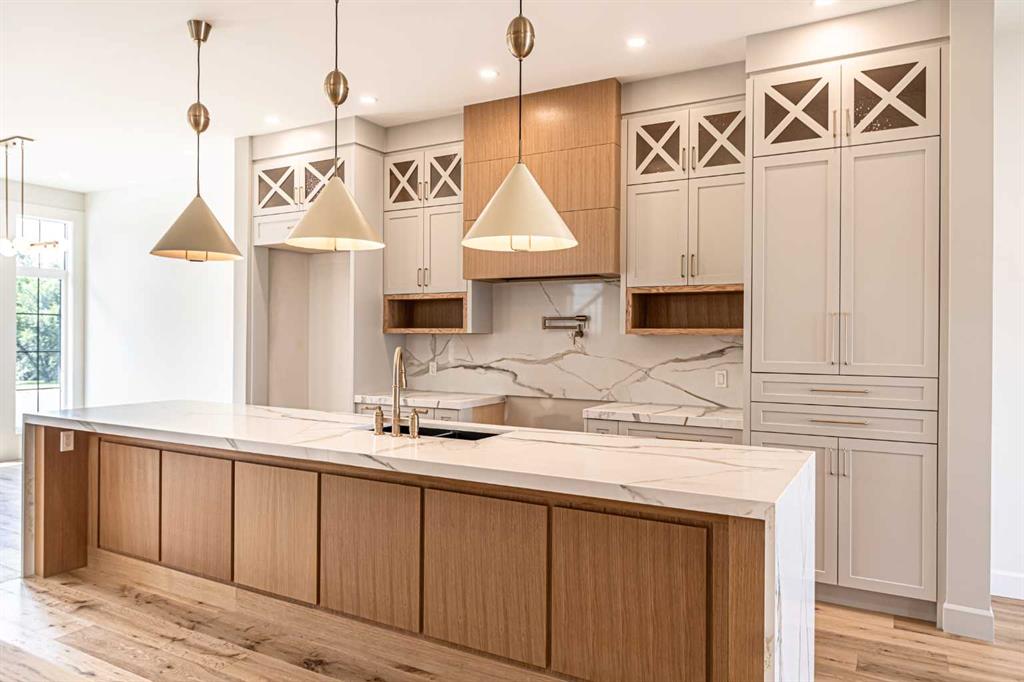 Welcome to 2048 41 Avenue SW — a stunning 4-bedroom, 3.5-bathroom luxury residence crafted by acclaimed inner-city builder Palatial Homes Ltd., perfectly situated on a premium corner lot in the heart of Altadore. Surrounded by some of Calgary’s best amenities, this home is just minutes from top-rated schools, playgrounds, parks, off-leash areas, boutique shopping, and vibrant Marda Loop dining — making it the ideal location for families and professionals alike. The home’s bold brick exterior, fully landscaped and fenced yard, and detached double garage make an unforgettable first impression while ensuring low maintenance and timeless curb appeal. Inside, you\'ll find a thoughtfully designed, light-filled interior with a bright front dining area and an open-concept layout perfect for entertaining and everyday living. Stunning wide plank hardwood flooring flows throughout the main level, complemented by 10-foot ceilings and designer finishes. The gourmet kitchen is a true showstopper, featuring quartz countertops, a full-size island, ceiling-height cabinetry, and a premium JennAir appliance package. The adjacent living room is anchored by a cozy gas fireplace with floating built-in shelves and large windows that flood the space with natural light. A custom mudroom and stylish powder room add everyday convenience and function. Upstairs, the primary suite is a luxurious retreat with a spacious walk-in closet, and a spa-like ensuite featuring heated tile floors, a freestanding soaking tub, walk-in shower, and dual vanities with quartz counters. Two additional well-sized bedrooms, a shared full bathroom, and an upper-floor laundry room complete this level.