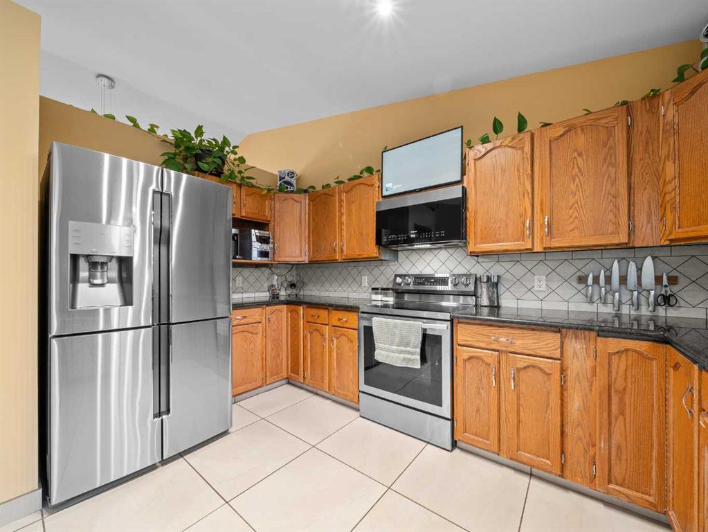 OPEN HOUSE - Sunday (October 19) from 1:00 pm till 3:00 pm! Welcome to this beautifully maintained five-bedroom family home located in a quiet cul-de-sac in Shawnessy, set on a massive, 6652 SF pie-shaped lot that backs onto a treed walking path and sides onto a park, offering exceptional privacy and an inviting natural backdrop. The main floor features vaulted ceilings and rich cherry wood flooring, with a spacious front living room and formal dining area that provide an ideal setting for family gatherings and entertaining. The well-designed kitchen includes granite countertops, recently upgraded stainless steel appliances, and a bright breakfast nook that overlooks the backyard and opens to a comfortable family room with a wood-burning fireplace. Step outside onto a large, sun-filled deck that extends your living space outdoors and leads to a large, fully fenced backyard surrounded by mature trees, perfect for outdoor enjoyment and recreation. The upper level offers three generous bedrooms, including a primary suite with a four-piece ensuite updated in 2017, as well as two additional bedrooms that share a full bathroom refreshed in 2021. The lower level features a cozy media room and a fourth bedroom, while the additional basement level is open for development or ideal for storage, or a home gym. This home has been thoughtfully updated over the years, including a new hot water tank in 2024, new deck railing and exterior paint in 2024, roof shingles replaced in 2017, all poly-b pipes were changed to PEX in 2022, and a wood-burning fireplace professionally cleaned and inspected in 2023. Located in a well-established and family-friendly community, this property is within walking distance to 3 schools, parks, playgrounds, and pathways, with convenient access to Shawnessy Town Centre, Fish Creek Park, Macleod Trail, Stoney Trail, and the Shawnessy LRT station. A rare opportunity to enjoy a spacious home with an exceptional lot and a beautiful setting close to everything.