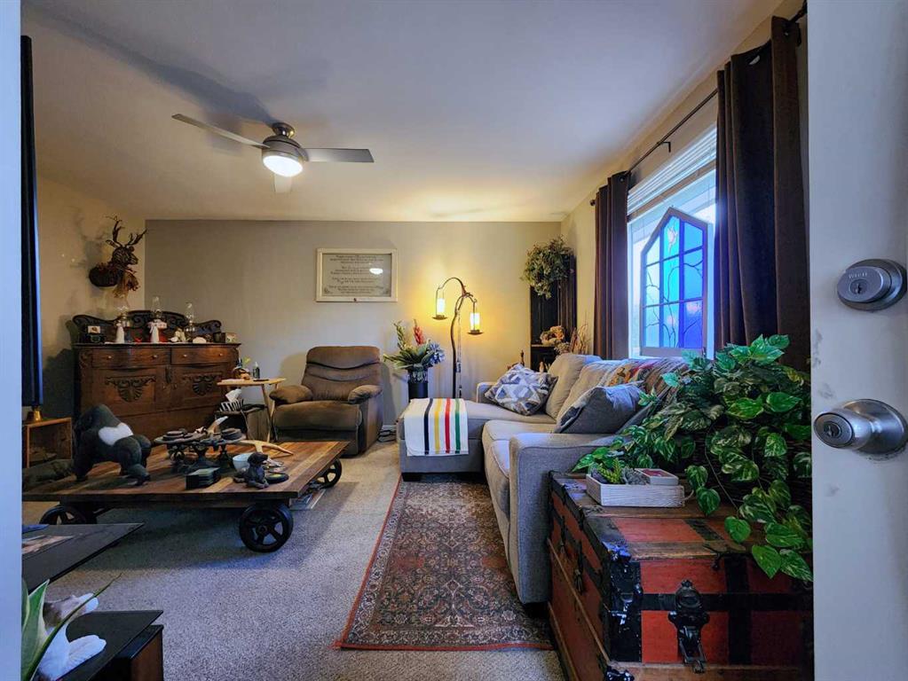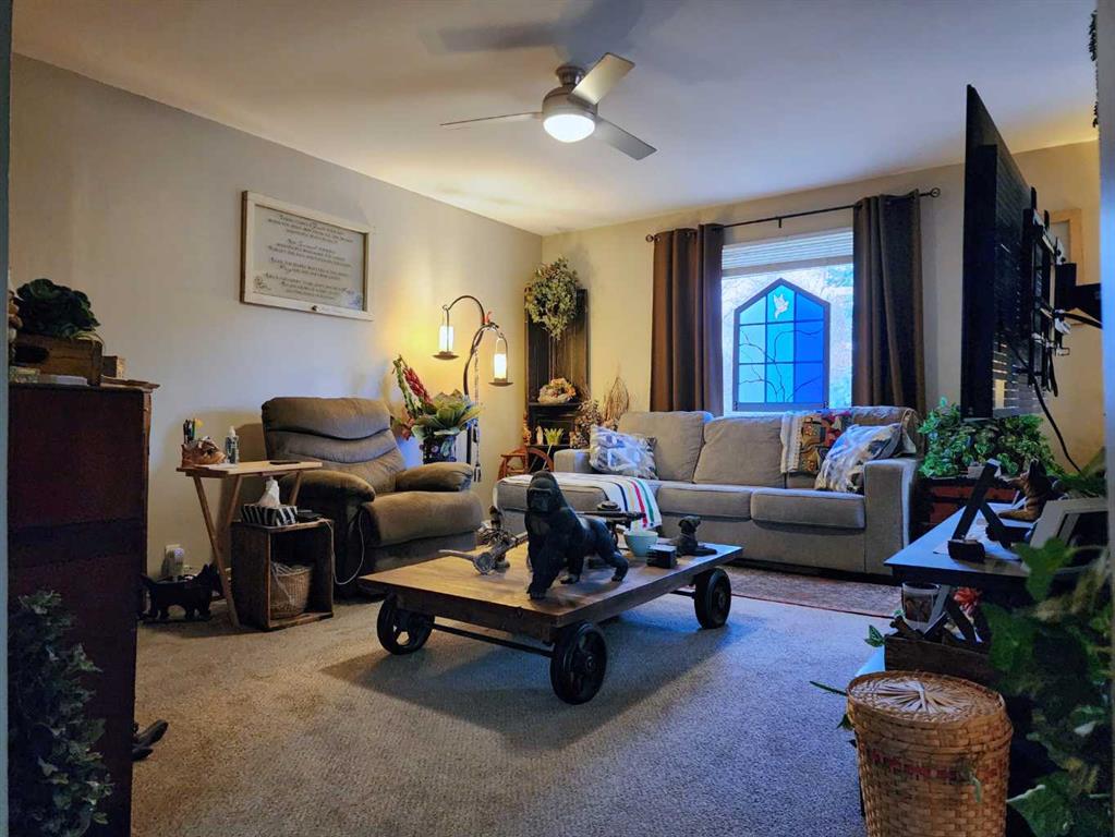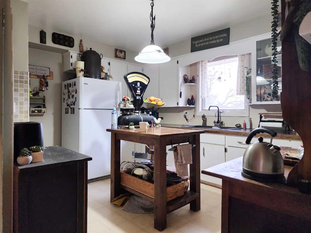This well-maintained 2 bedroom, 2 bathroom home is perfect for first-time buyers, downsizers, or investors. It features one full bathroom on the main level and a second in the fully renovated basement, offering comfortable and flexible living space throughout. The attached single garage had new shingles installed in 2019, while the rest of the homes shingles are newer as well. The basement has been thoughtfully updated by the current owners, with a newer shower, updated flooring, fresh drywall, and a finished ceiling. A small kitchen in the basement adds convenience, ideal for use as a summer kitchen during the warmer months. The home is equipped with a newer hot water tank and furnace. Alley access allows for additional parking, perfect for an RV or trailer. The spacious backyard holds great potential for a lovely garden and includes a cozy fire pit area for relaxing evenings outdoors. A new front exterior porch and steps create a warm and welcoming entrance. Located close to schools, shopping, and tennis courts, and offering easy access to Highway 3, this property is just a 15-minute drive to Lethbridge, making it an ideal blend of comfort, convenience, and opportunity.