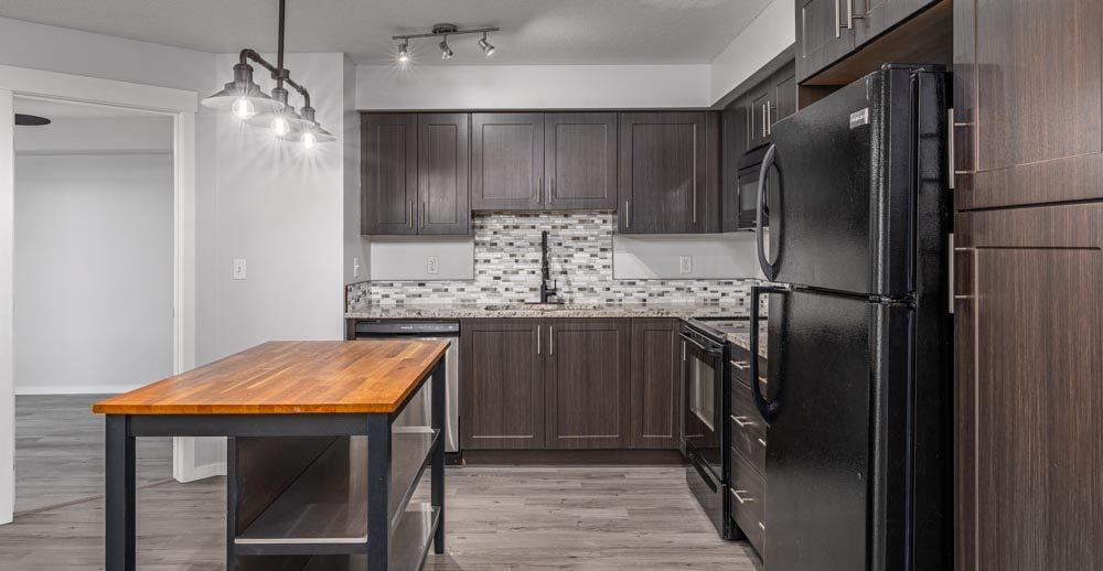 Inside, brand-new luxury vinyl plank flooring ties together a bright open-concept plan. The modern kitchen offers quartz countertops, full-height cabinetry, and a central island that opens to the living area so the natural outlook stays front and center when you cook, host, or unwind. The primary bedroom includes a private 4-piece ensuite and walk-in closet; the second bedroom has convenient access to the main 4-piece bathroom, which also functions as a guest bath from the hallway - a flexible setup for family, visitors, or a home office.