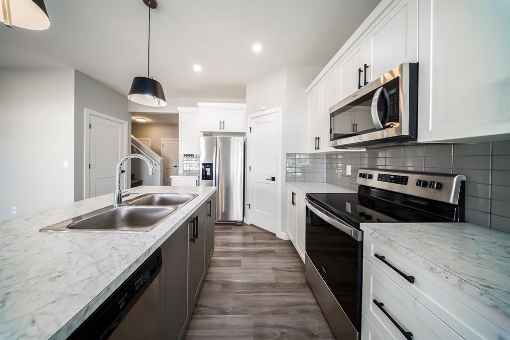 Open House Saturday, October 18th from 2:00 p.m. - 4:00 p.m. This well kept home will impress you with all that it has to offer. Built by the highly respected Abbey Platinum Master Built, the open design with the kitchen looking onto the great room is ideal for enjoying time with family & friends. The stylish kitchen offers an abundance of cabinetry and countertop space including an island with a sink. There is a walk through pantry that leads to the attached garage. There is natural light that streams through the windows in the dining area and great room making this a bright home. The dining area leads out to the deck and the good sized fenced backyard with no neighbours behind. Upstairs offers 3 bedrooms including the primary bedroom with an ensuite. The laundry is conveniently located on the bedroom level. The basement is open for your storage needs or future development plans. This quality built home offers roughed in floor heating. Penhold is a growing community with schools, parks and many amenities and is minutes from the City of Red Deer.