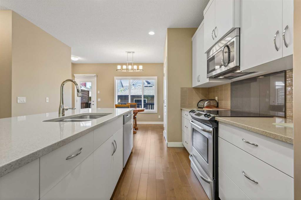Move in Ready - Check and Compare!! Welcome to 1318 Walden Drive SE, a very clean, beautifully maintained, and thoughtfully designed home offering 1,516 sq ft of squeaky-clean, stylish living space in the peaceful, established end of Walden. Featuring a true double-detached garage (Drywalled, insulated, 40-amp panel, heated, 2x6 construction), 3 bedrooms, 2.5 bathrooms, and a partially finished basement, this home is perfect for growing families or savvy buyers looking for exceptional value. Step inside to a bright, uplifting interior featuring rich hardwood flooring and an open-concept main floor that flows effortlessly from room to room. The spacious front living room boasts oversized windows that let natural light pour in, while the gourmet kitchen dazzles with sleek white cabinetry, quartz countertops, a subway tile backsplash, stainless steel appliances, a large center island, and a walk-in pantry. The supersized dining area makes entertaining a breeze. It overlooks the sunny, south-facing, fully fenced backyard, complete with a 15\' x 10\' deck, two concrete patios, and low-maintenance landscaping—perfect for hosting or unwinding. Upstairs, you\'ll find three generous bedrooms, including the primary suite with a private 4-piece ensuite and a walk-in closet. A convenient upper laundry closet and an additional 4-piece main bath provide thoughtful function for family living. The partially finished basement features a spacious family room, a flex area, and a bathroom rough-in, offering even more potential for future development, guest space, or hobbies. The basement exterior walls are constructed with two-by-six framing and insulated with six inches of insulation. Additional upgrades include a white-painted staircase railing, James Hardie Board siding & stone detailing for curb appeal and durability. Underground irrigation in the front yard. Premium garage construction for Alberta winters. Quiet location within walking distance to green space and Township shopping development. This home offers both comfort and convenience, with quick access to Walden’s local amenities, Township in Legacy, Stoney Trail, and Macleod Trail, and is just minutes from Seton’s South Health Campus. Don\'t miss this chance to secure a turnkey property in a growing, well-connected community. Welcome home to 1318 Walden Drive SE—book your private showing today!