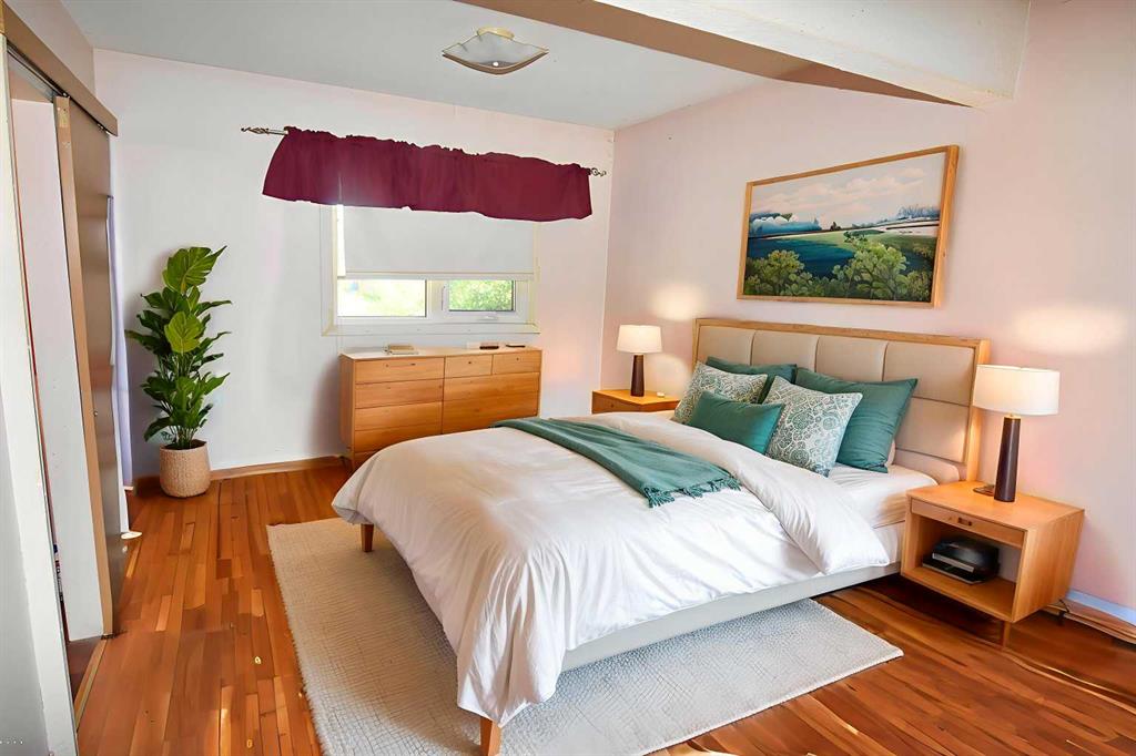 73 FT wide by 100Ft deep lot on Trafford Drive NW with alleys on two sides. Quiet street that is actually a large crescent. Flat site that could be developed for multiple uses. Many new builds on large lots throughout the neighborhood. All levels of schools in Thorncliffe and surrounding areas. Quick access to all amenities and downtown. How about remodeling the existing 1368 sq ft bungalow? A quality addition was added to expand the existing primary bedroom plus add a 3 pc ensuite bath. A large family room was also added with a fireplace and patio doors to the back deck and beautiful yard. The kitchen was remodelled in 2008. Additional upgrades include 2006 hardwood was refinished, shingles 8 years ago, main bath in 2017 and furnace and hotwater tank in 2017. There is also an 18ft by 24 ft double front drive attached garage with a paved driveway. Landscaping and back yard flowerbeds have been kept up providing a very private area. This could be the one! Call your Realtor for viewing.