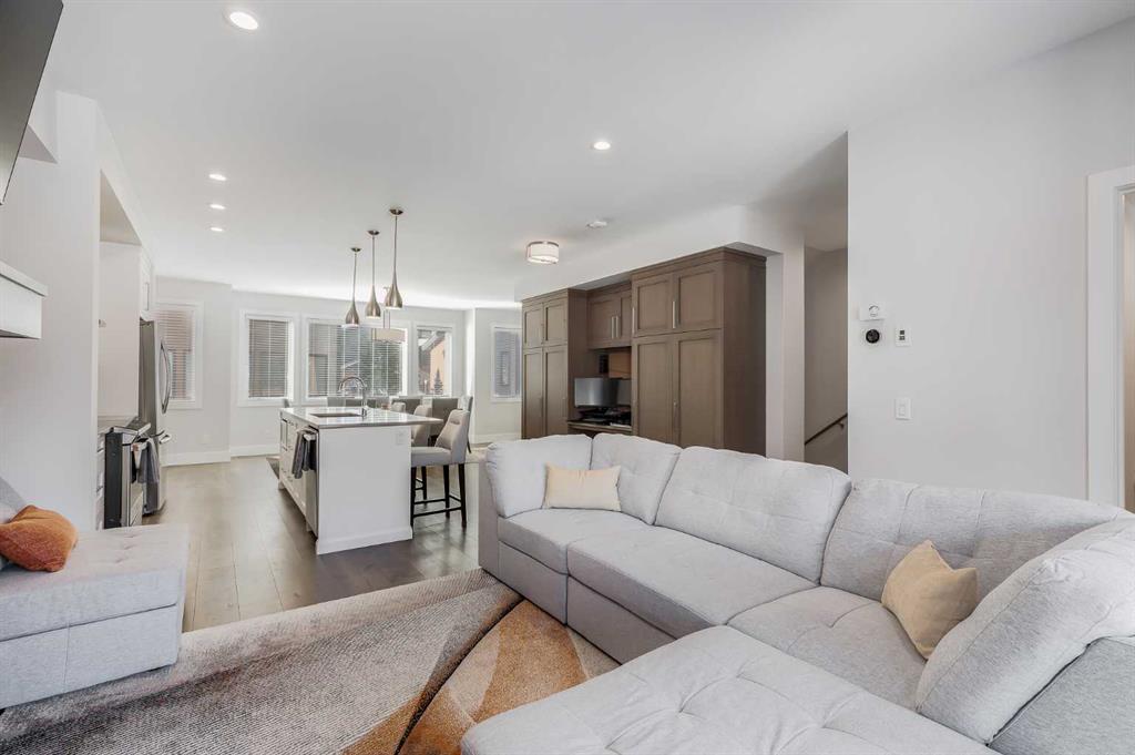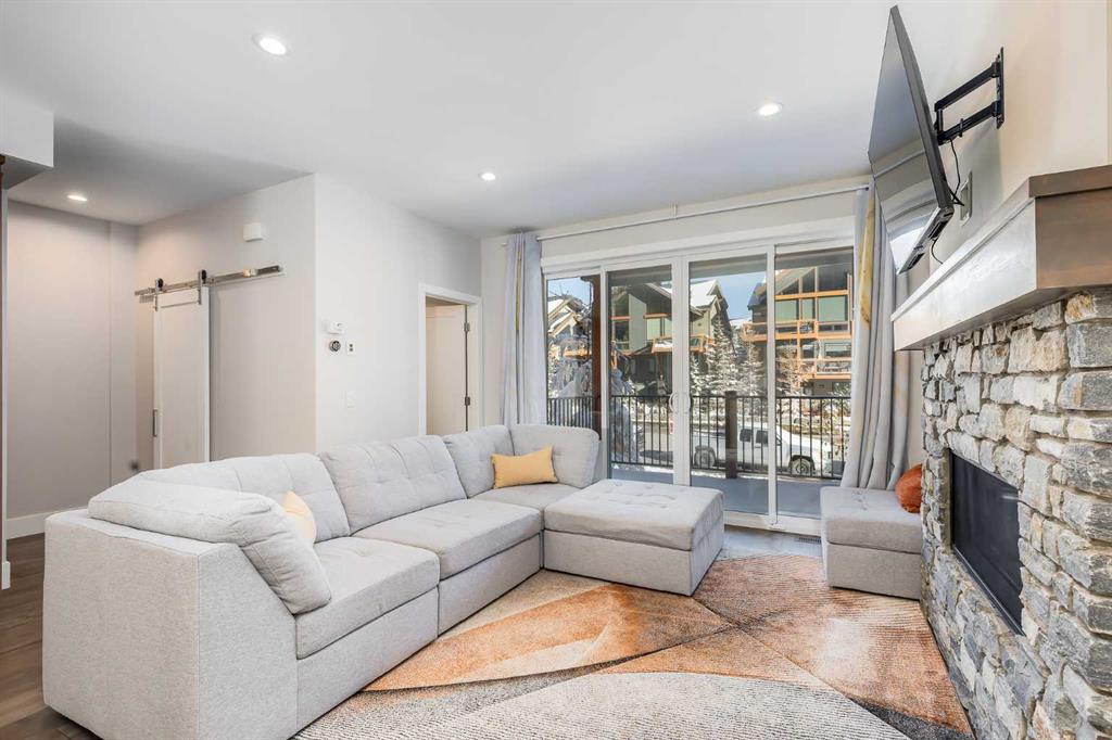 Beautifully maintained three-bedroom townhouse in Stewart Creek featuring over 1,700 sq ft of stylish living space and a double attached garage. Located in sought-after Three Sisters Mountain Village, this bright and inviting home showcases an open-concept main floor with a chef\'s kitchen offering quartz countertops, modern cabinetry, stainless steel appliances, and recent upgrades including air conditioning, a gas range, and a new refrigerator. The spacious dining area is perfect for entertaining and flows into a comfortable living room with a cozy fireplace and access to a deck boasting breathtaking mountain views. Upstairs you\'ll find a serene primary bedroom complete with a walk-in closet and ensuite bath, along with two additional bedrooms and another full bathroom. With engineered hardwood floors throughout, abundant natural light, and excellent storage options including a large gear room, this home blends luxury and practicality. The upcoming Gateway at Three Sisters commercial development will soon add nearby shops, grocery stores, and restaurants, enhancing the convenience of this exceptional mountain property.