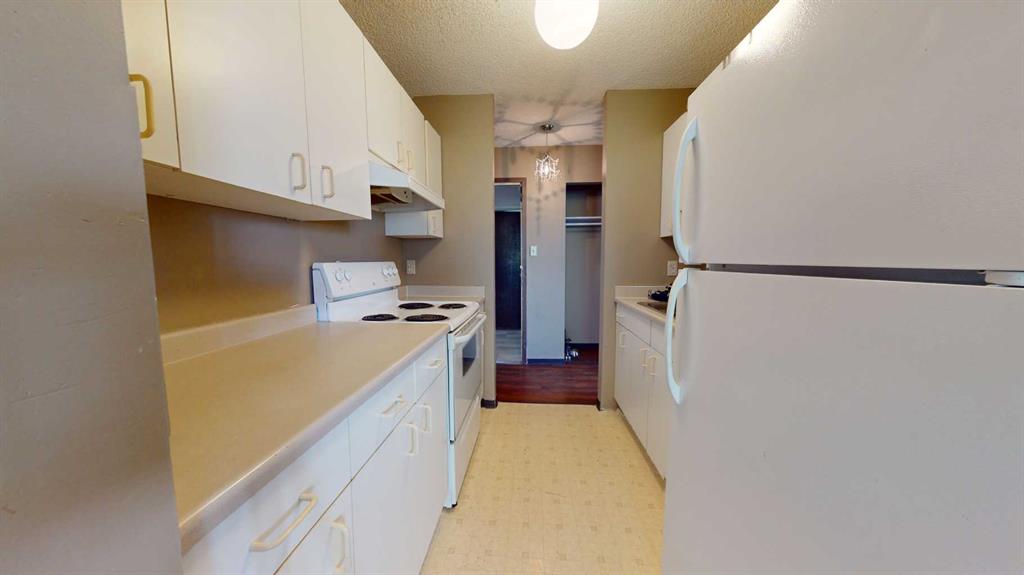 Unit features an entry way closet and vinyl flooring throughout. Walk through kitchen with ample cabinets. Living room has access to the attached rear facing balcony. Good sized bedroom and 4 piece bathroom.