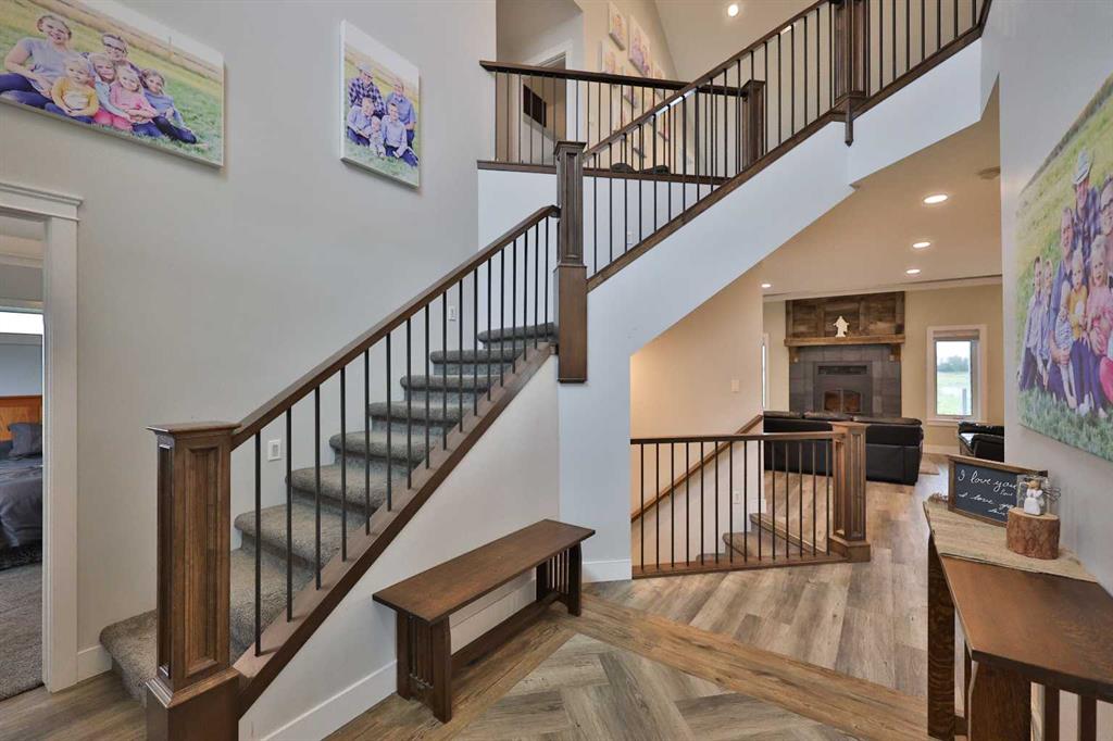 Welcome to a truly one-of-a-kind, acreage where modern meets country. This 2 storey ICF home is a custom-designed fortress of efficiency, comfort, and self-sufficiency, featuring nearly 5,000 sq ft of living space in the main area and an additional 750 sq ft above the garage. Perfectly situated at the end of a quiet, dead-end road just a 5-minute drive to Raymond and 15 minutes to Lethbridge. Be greeted by a grand, 2 storey front entrance with a beautiful staircase and a view of the soaring 13.5’ ceilings in the upper floor library. This expansive home is designed to accommodate a large family, guests, and working from home, boasting 6 bedrooms, 2 offices, and 4.5 bathrooms in the main area. The space above the garage adds 2 more bedrooms, a comfortable ensuite bathroom, and more kitchen and living space. Enjoy the convenience of a comfortable main floor primary bedroom close to the expansive kitchen, featuring a double oven, large double fridge/freezer, large pantry, ample cabinet space, and an oversized peninsula. Large triple pane windows throughout let in plenty of natural sunlight. The wood burning fireplace provides coziness and enough radiant heat to keep the entire house comfortable while providing substantial savings on propane. Enjoy the warm, radiant heat of the high-efficiency boiler system, featuring in-floor heating in the basement and garage. The home has 2 furnaces and is set up with a 3 zone AC for customized climate control. Never worry about a power outage with the Generac backup generator, sized to automatically power the entire house. The interior showcases granite and quartz countertops with custom built hickory cabinetry throughout focused on functionality and luxury. The massive mudroom is an organizational dream. Laundry is simplified with 4 laundry chutes directly from the upstairs to the main floor, complete with hookups for 2 washers and 2 dryers. A central dehumidifier system efficiently manages air quality in the laundry, bathrooms, and kitchen. The 4 large upstairs bedrooms each feature fantastic play/sleeping/storage lofts. An additional study loft overlooks the library and front entrance. The massive basement family room is perfect for entertaining and kids play. Besides ample basement storage (including cold storage) there’s a large guest bedroom with an attached bathroom. This property is set up for those who value outdoor living and gardening. For irrigation and animals, it benefits from an acreage irrigation agreement with Raymond Irrigation District for pressurized raw water usage. A Stock Boss watering system and 2 yard hydrants are perfectly situated for conveniently watering animals. Relax or entertain on the 3/4 wrap-around deck, offering multiple vantage points to enjoy your quiet, private surroundings. This is a rare opportunity to own a bespoke, high-efficiency home of this magnitude, designed for a superior quality of life and exceptional versatility. Are you ready to step into your dream acreage?