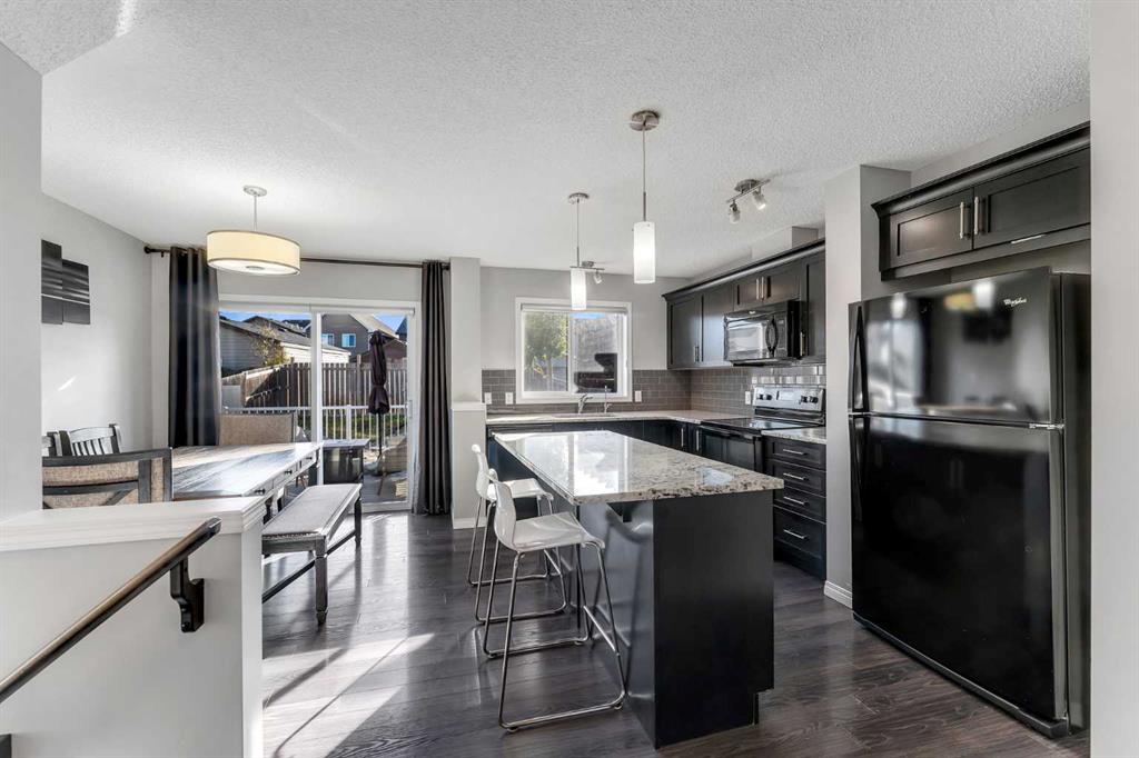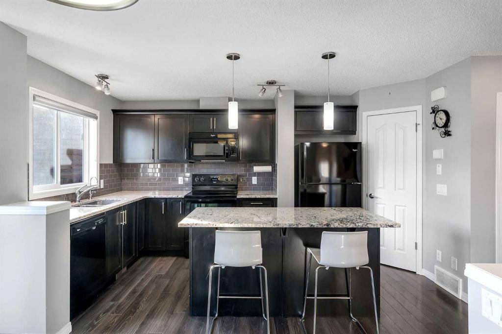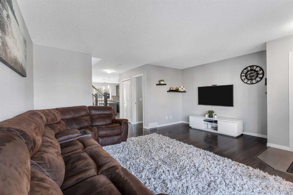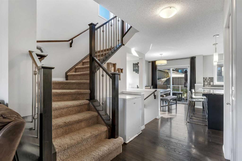 Offering a thoughtful layout, modern finishes, and standout outdoor space, this bright & functional 4 bedroom home in Cranston checks every box. The main floor greets you with a generous family room and a practical entryway with storage. The open-concept kitchen is anchored by a central island with granite countertops, a full pantry, and adjoining dining area – an ideal setup for cooking, gathering and entertaining. Outside, this property truly shines. The landscaped backyard features a large composite deck with a gas line for barbecuing, while the low-maintenance side yard includes a shed and convenient access from the separate side entrance; offering potential for a secondary suite subject to approval and permitting from the city. An oversized double parking pad at the back provides excellent off-street parking and future garage potential. Upstairs, you’ll find two bright secondary bedrooms, a four-piece bathroom, and a spacious closet with laundry hook-ups for added convenience. The primary retreat is set apart with its own large walk-in closet and a private four-piece ensuite. The fully developed basement expands the living space even further with a fourth bedroom, another full bathroom, and a versatile recreation area perfectly suited for play space, workouts or cozy movie nights. A one-of-a-kind find in this price range – turnkey, fully finished, and unmatched value in this family-friendly neighbourhood with a playground & park just steps away. Cranston offers easy access to Deerfoot & Stoney Tr, great schools, an abundance of shopping & restaurants nearby, and beautiful walking trails & green space.
