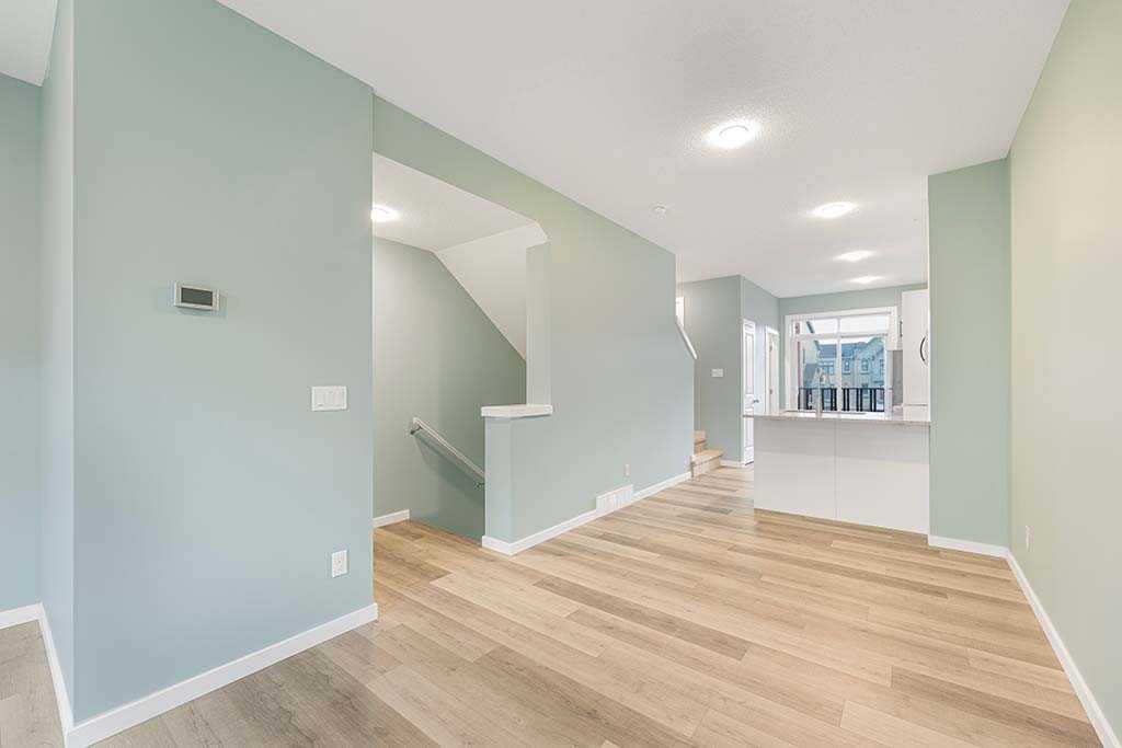 Inside, the bright and airy open-concept main floor features soaring 9-foot ceilings, beautiful wide plank flooring, a sleek modern kitchen with soft-close cabinetry, a quartz island breakfast bar, and a full stainless steel appliance package. A convenient 2-piece bathroom completes the main level.