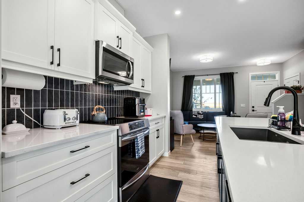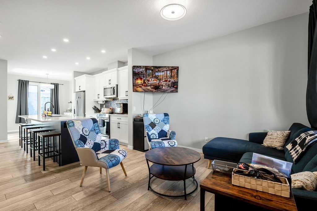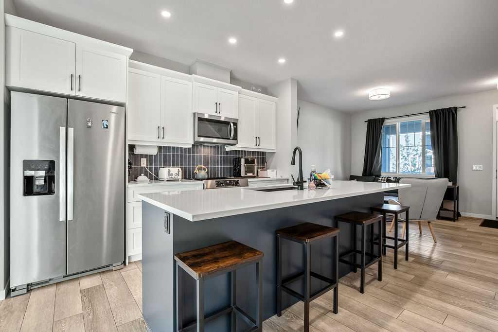 A fresh, modern one-year-old two-storey in showhome condition — complete with A/C and an oversized garage! Step onto the welcoming front porch and into the bright, open-concept main floor. Extra-high ceilings make the space feel massive, especially in the stunninging kitchen featuring quartz countertops, stainless steel appliances, an undermount island sink, and an induction stove.The spacious living room easily accommodates your favorite couch, and the dining area at the back is perfectly sized for your favorite table. Past the half bath, head upstairs to find two large bedrooms plus an oversized primary suite with a walk-in closet and a luxurious four-piece ensuite (so you dont have to share your bathroom with kids or guests). The top-floor laundry room isn’t an afterthought — it’s a full-sized space with shelving and plenty of storage. A second four-piece bathroom completes the upper level. Downstairs, the basement is ready to be transformed into a huge family room, guest suite, or whatever you can dream up. With nine-foot ceilings, it will feel bright and open once finished. The oversized garage offers tons of space for vehicles, workbenches, and storage, while the extra-high double doors make access simple. If you’ve been wanting a new build but don’t want to wait — this is the one. Don’t miss it!