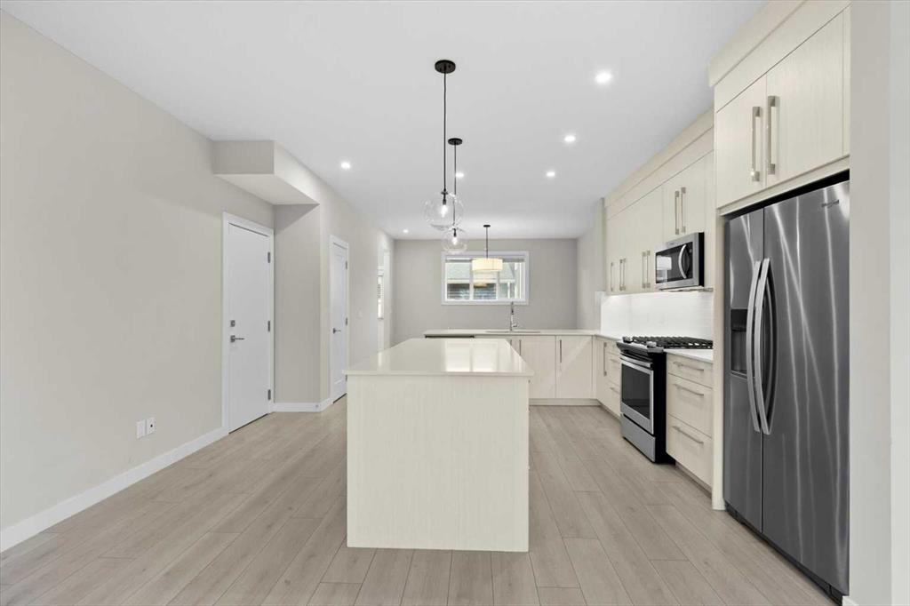 Welcome to this stylish half-duplex with a legal secondary suite located in the thriving northeast community of Cornerstone. The main floor features an open layout with a generous living area, dining space, and a well-appointed kitchen showcasing a central island, quartz countertops, stainless steel appliances, and a gas range, perfect for both everyday living and entertaining. Upstairs includes three spacious bedrooms, including a primary suite with a walk-in closet and a 4-piece ensuite with double vanity. You’ll also find a second 4-piece bathroom, laundry on the same level, and a bonus area offering flexibility for a home office, playroom, or media space. The one-bedroom legal basement suite has its own kitchen, living room, 4-piece bathroom, and laundry, and is currently tenant-occupied, offering a great mortgage helper or investment opportunity. A double detached garage adds convenience, and the location offers quick access to Stoney Trail, Country Hills Blvd, shopping, parks, and schools. A fantastic opportunity for homeowners or investors in one of Calgary’s fastest-growing communities.