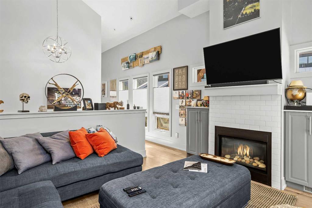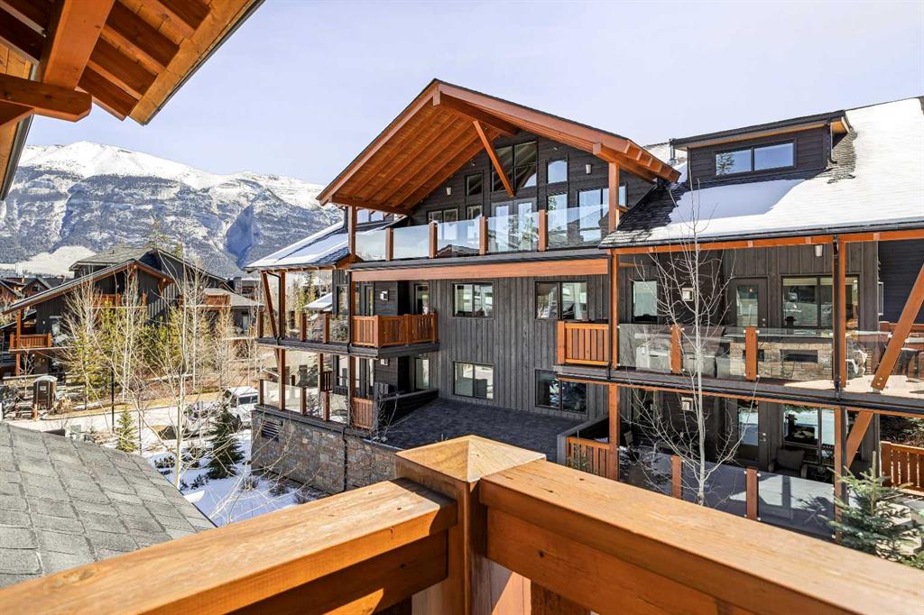 In a back row location, alongside a lovely treed hillside you\'ll find this well appointed, bright & spacious modern townhome. Over 3 storeys, with no one above or below you, this end unit provides serenity & pride of place in the Three Sisters of Canmore. On entry, vaulted ceilings & a glass bordered stairway leads up to the main level, or down to a handy flex space, laundry & single garage, perfect for active lifestyles. The middle floor offers 2 bedrooms, where the primary suite is an ideal respite with its own bath & generous closet space. A private balcony leads to the woods alongside. Upstairs, views are panoramic, where 3 walls of glass bring the outside in. A thoughtfully laid out kitchen sits together with the dining area & will be the heart of entertaining. Opposite, the living room inspires relaxation & calm under soaring ceilings. Finding inspired design which brings comfort & utility while also offering an environment that\'s \"of\" Canmore is a rare offering. We hope you agree!