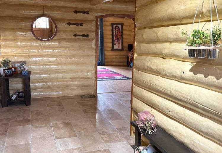This beautiful one-and-a-half log home offers a peaceful country lifestyle, surrounded by nature. Bordered by the the Smoky River and nestled amongst mature trees, this magical spot provides serenity, privacy, and peaceful views in every direction. It is conveniently located within an eight minute drive to town. This home features a spacious wrap-around deck, perfect for enjoying morning coffee, evening sunsets, or watching the horses graze in the paddock. Inside, the log interior and open-concept design create a warm and airy atmosphere. The country kitchen is spacious, with generous cabinet and counter space, and includes brand-new appliances. The loft captures the log home ambiance with its overview of the family room below. This upstairs \"hideaway\" offers a huge landing area with unique nooks that can be used for a guest room, playroom, studio, or whatever your creative side desires. Outdoors, the property is thoughtfully set up for horses, providing plenty of space for grazing and exploring. Numerous outbuildings offer dry wood storage, workshop area for the handyman, hay storage, a tack room, a heated pet area, and even a shed that could easily convert to a chicken coop. Whether you are looking for a peaceful retreat, a hobby farm, or a riverfront escape, this property offers it all - rustic charm, natural beauty, and room to live your country dream.