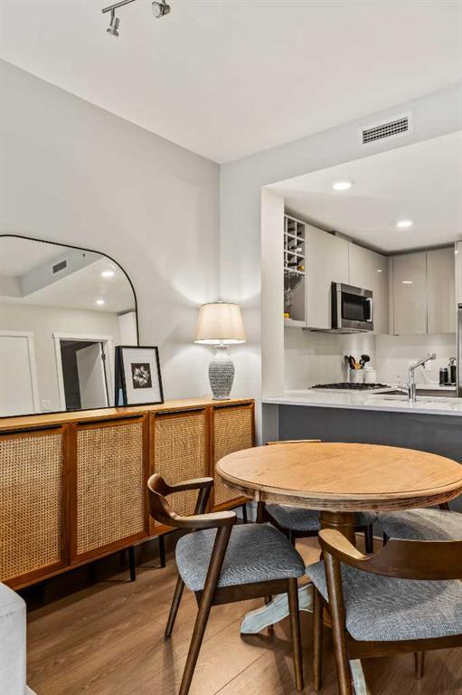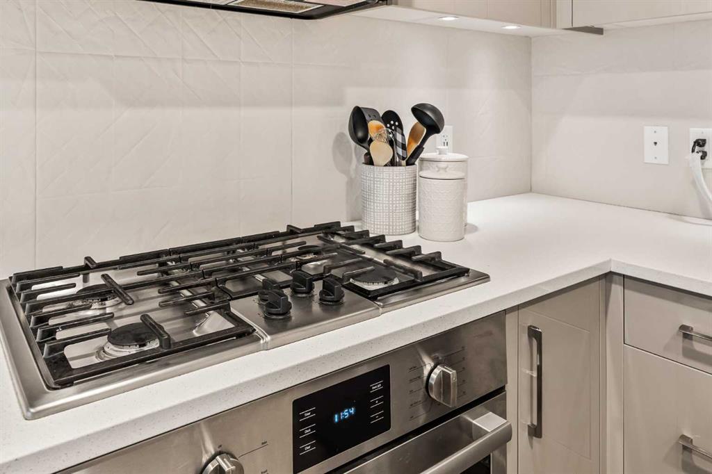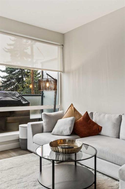 For the discerning buyer - Proudly presenting contemporary luxury with an enviable inner-city address. Situated on the quiet West side of the concrete Kensington building, this sophisticated second floor Hillhurst sanctuary offers over 600 SF of curated living space. Gleaming floors, refined quartz countertops, neutral palette, and a wealth of custom built-in storage delivers understated elegance. The stylish kitchen is a model of thoughtful design and modern function boasting extensive cabinetry with built-in wine rack, Fisher Paykel stainless steel appliances including a gas stove top, quartz countertops, a peninsula with seating for four, and an upgraded custom storage cabinet by California Closets. An impressive bank of floor to ceiling windows allows natural light to flood this stunning boutique CORNER unit where the designated dining area and pretty living room offers a comfortable space for both relaxing and entertaining friends. The sun-drenched owner’s suite easily accommodates a queen-size bed and highlights expansive windows while a custom California Closet system brings organization to the room. A spa-inspired ensuite offers a retreat at the end of the day featuring a large vanity with quartz countertop, sperate glass shower and luxurious soaker tub. Completing this exceptional unit is convenient in-suite laundry and a storage room with a FIFTH highly upgraded California Closet custom built-in. Other notable highlights of this exclusive residence include 1) air conditioning, 2) titled parking, 3) separate storage unit, 4) coveted West-facing balcony, and 5) a PET FRIENDLY building. The Kensington is a special blend of elegance and practicality in the true heart of Kensington with the additional conveniences of bike storage rooms and a car wash bay. Situated minutes from downtown, SAIT, ACAD, U of C, Sunnyside LRT station, Foothills Medical Centre, Riley Park, the Bow River Pathway system and all the shops and amenities of vibrant Kensington Village, this rare property delivers it all – urban vitality, a serene retreat, and an extraordinary lifestyle.
