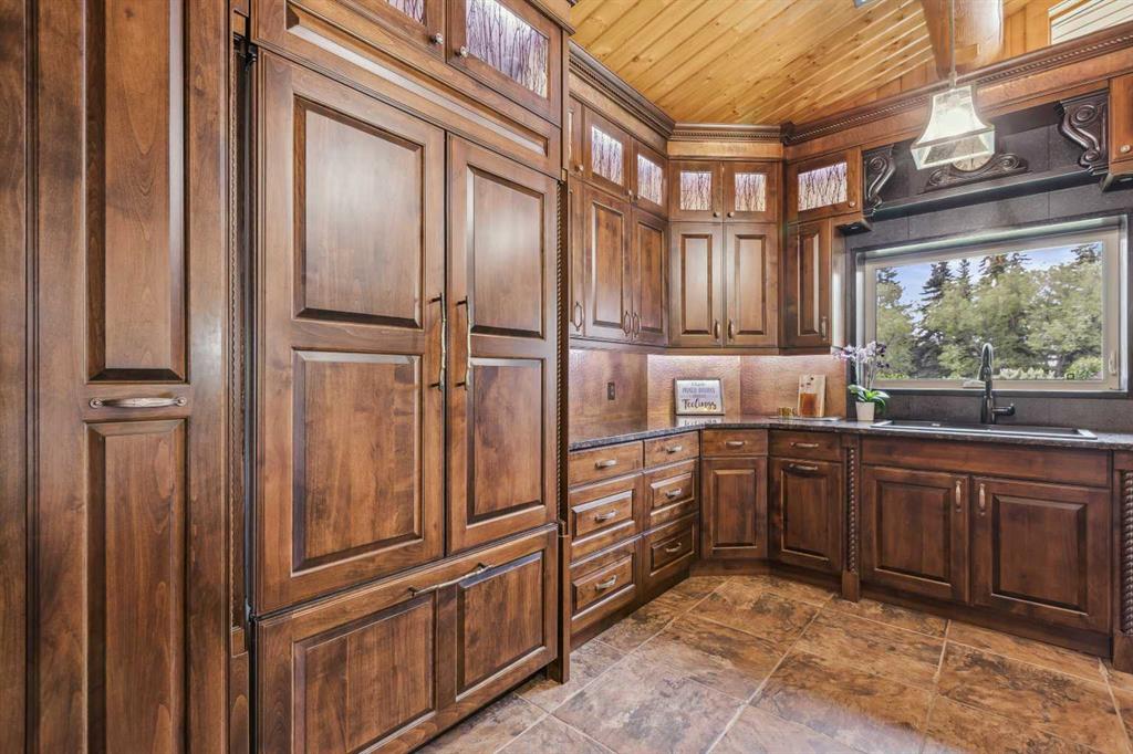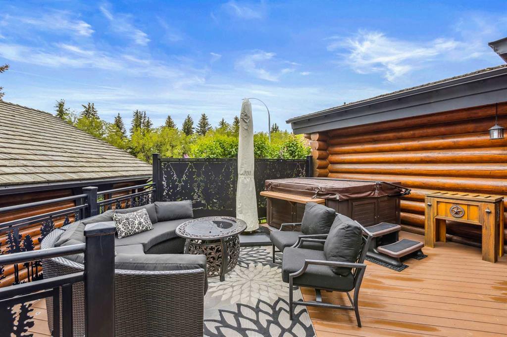 Discover luxury living in this custom immaculate home, nestled on just over 1/3 acre in a private cul-de-sac location and backs onto a 4 acre dry pond. This stunning pristine property offers over 3,400 square feet of developed space, thoughtfully designed to cater to the desires of discerning buyers who appreciate the charm of log homes and the privacy of a secluded location. Constructed with precision and artistry, this log home showcases the beauty of natural wood in every corner. The grand entrance leads you into a space where exposed log beams and walls exude rustic elegance, blending seamlessly with modern amenities. With 5 bedrooms and 3 full bathrooms, this home provides ample space for family and guests. The loft-style primary bedroom with skylights is a true retreat, featuring a luxurious copper soaker tub and seated vanity in the ensuite bathroom. The heart of the home boasts a custom kitchen equipped with high-end appliances and cabinets. The island seats 7 with river rock brazilian granite. Perfect for culinary enthusiasts and entertaining guests. Enjoy cozy evenings by the fireplace, take in the soaring ceilings and experience the comfort of in-floor heating throughout the home on every level. Two main floor bedrooms, a full bathroom, Main floor laundry, spacious mud room and a plethora of storage options add to the convenience and functionality of this home. The fully developed basement includes a spacious family room with a wet bar, built in\'s, an exercise space, 2 bedrooms, and a full bathroom with a hydrotherapy tub. The yard is a masterpiece of landscaping, featuring mature trees and shrubs, nighttime lighting, and a custom firepit area with backlit steel engraved panels and built-in benches. Enjoy outdoor gatherings in the custom firepit area or relax on the spacious deck soaking in the hot tub or lounging in the sun. There\'s also RV parking and two large storage sheds. Perfect for car enthusiasts, the tandem triple oversized garage provides ample space for vehicles and storage. Strathmore offers a full range of amenities, including excellent schools, sports facilities, parks, and pathways. This property combines the tranquility of a private retreat with the convenience of nearby urban amenities. This exceptional log home is a rare find, offering the perfect blend of rustic charm and modern luxury. Whether you are looking for a peaceful retreat or a place to entertain family and friends, this property has it all. Schedule your private viewing today and step into a world of unparalleled beauty and comfort. Don’t miss the opportunity to make this home your reality.