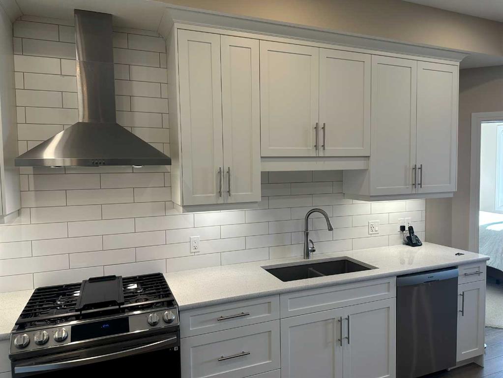 Your primary suite offers a peaceful retreat with a spacious walk-through custom closet and a spa-inspired ensuite featuring double sinks and quartz counters. A second bedroom and full bathroom, plus a convenient in-suite laundry with washer and dryer, complete the layout.