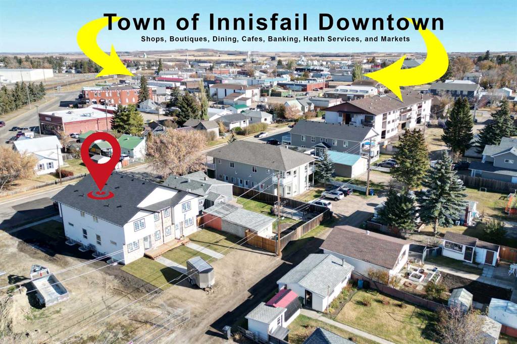 This exceptional BRAND NEW 4-plex offers a rare chance to own a turnkey multi-family property in the heart of Innisfail. With a total of 3,968 sq. ft. above grade and an additional 1,736 sq. ft. below grade, the property combines style and functionality throughout. Each of the four units provides 1,426 sq. ft. of finished living space with a bright open-concept main floor featuring custom cabinetry, a large center island, granite countertops, and a convenient two-piece bathroom. Upstairs, both bedrooms are generously sized and include their own private four-piece ensuites, while the fully finished basement adds even more living space with a family room, an additional bedroom, laundry complete with washer and dryer and a full bathroom. In total, every unit offers three bedrooms and three and a half bathrooms, designed to meet the needs of modern living. The property is centrally located close to downtown and only one block from the town’s schools, making it highly desirable for families and long-term tenants. The exterior is landscaped and includes parking pads for each unit, creating a low-maintenance and well-planned development. With 5,704 sq. ft. of total finished living space across all four units, this brand new build with Certified New Home Warranty is an outstanding opportunity for investors or owner-occupiers in one of Alberta’s growing communities. Based on a market rent of $2000 per month (per unit) your gross cap rate would be 7.4% and combined with a 10 year new home warranty make for a worry free investment.