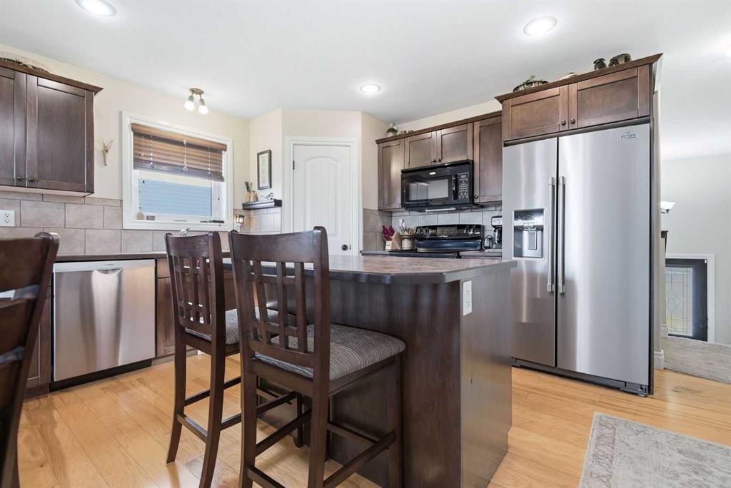Welcome to 184 Jenner Crescent, an immaculate, clean and move-in ready home! This beautifully kept half duplex offers the perfect blend of comfort and style in a highly desired bi-level design with an executive touch. The open-concept main floor features a spacious kitchen with plenty of cabinets, large island and an oversized dining area—perfect for hosting family and friends. The inviting living room creates a bright space ideal for both relaxing and entertaining. The well-planned primary suite offers dual walk-through closets and a full 4-piece ensuite, while the second bedroom on the main level makes a great office or guest room. Main floor laundry adds extra convenience. Downstairs, enjoy a large family room—perfect for movie nights or gatherings—along with two more generously sized bedrooms and another full bathroom with impressive tile work. The in-floor heat keeps things comfortable, while central A/C keeps things cool in the summer. Step outside to your beautifully landscaped backyard, complete with a gazebo, offering a private and peaceful retreat for all seasons. An oversized single attached garage completes this exceptional home. This home is clean and stands out for its comfort, and thoughtful design—ideal for families, downsizers, or anyone who values quality and space. Updates include: newer shingles, appliances, HWT, some triple pane windows.