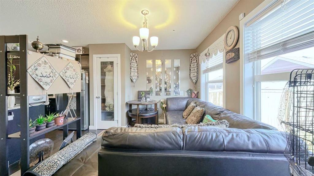 Welcome to this very desirable and family oriented community of Evanston. Here is your chance to own a beautiful, well kept home, offering 3 bedrooms, 2 full and 1, 2 piece bathroom, a double detached garage, New roof and New Siding. Large front porch welcomes you onto this home. Warm Real hardwood floor through out the main level. A spacious Living room with big windows, leads you into heart of the home - the kitchen. This kitchen is ideal, - large island with a breakfast bar, granite countertop, lots of dark contrast cabinets that standout against the beautiful granite countertops, pantry, stainless steel appliances. Large dining room for your family size dinners, Classy railings on the staircase leading up to the upper floor - A large primary bedroom with a 4 piece En-suite bathroom and a walk-in closet, two more bedrooms and a 4 piece bathroom. The lower level is unfinished, has 2 large windows, Laundry, rough-ins for future bathroom and lots of storage space. There is Central Vacuum Connection and the whole house is wired for Security Alarm system. A double detached garage that you will truly appreciate in the cold Calgary winters. Big Fenced backyard. Close to Parks, Schools, Major Shopping, Bus routes, many amenities and Major routes.. This home has a lot to offer that you will enjoy in your new Home. Excellent value in an great community.