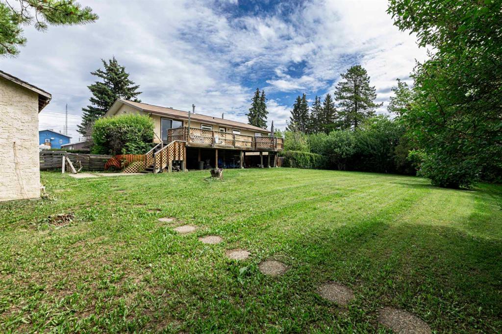 Come home to this classic built home featuring all the perks of its time! HUGE, luscious front and rear yards giving you the privacy and space you’ve been searching for. PLENTY of windows allowing ample sunlight in and minimizing your electricity needs. Beautiful living room overlooking the front yard with cozy WOOD burning stove and custom stone work. SPACIOUS dining room giving the perfect sized space for family meals and easy access to the kitchen and SOUTH FACING PATIO (hello, BBQ season!). Notice ample STORAGE as you make your way through this well loved home. The RENOVATED bathroom elevates the functionality of the family home with dual sinks, jet tub/shower combo and cheater door to the primary bedroom with TALL, DEEP closet space. Across the hall, find TWO more excellent sized bedrooms. Downstairs is the perfect layout for families of all ages with TWO flex room spaces easily accommodating a play room, multi-theatre rooms, games or lounging rooms - it awaits your personalized touches! Enjoy the CONVENIENCE of the 3 piece bathroom with shower plus a 4th and 5th bedroom, and BIG windows throughout this lower level. New furnace, ample PARKING space, close to schools, recreation, full services and all amenities, come see what this 1300+ square foot home in the friendly town of Rimbey has to offer!