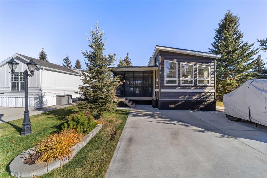 Welcome to 21 Coyote Creek – a rare opportunity to own a 2024 luxury Park Model backing directly onto the 9th tee box in a four-season golf resort community. This fully furnished, turnkey 544 sq ft retreat sits on a private 0.08-acre lot & offers thoughtfully designed indoor-outdoor living with unmatched quality & efficiency. Step inside to discover soaring high ceilings, durable vinyl plank flooring, & an expansive open-concept living space flooded with natural light. The chef-inspired kitchen features black stainless steel appliances, ample cabinetry, a modern sink with black fixtures, & spacious dining options. Relax in the cozy living room by the gas fireplace with built-in TV & surround sound above, framed by rich wood tones & custom millwork. The spacious bedroom is a restful retreat with built-in cabinetry & warm accents. The spa-inspired bath includes a full-size shower, upgraded vanity, backlit mirror, & linen storage. Enjoy the seasons from your massive 11x15 enclosed composite deck or your 11x12 covered composite deck, ideal for entertaining or peaceful morning coffee. A concrete patio with wood-burning outdoor fireplace extends the living space with serene golf course views & towering evergreens. Built for year-round comfort & energy efficiency, this home boasts 2x6 construction, R30 heated floors, R40 insulated metal roof, a six-sided vapour-sealed barrier, & impressive performance of just over 1 ACH (air change/hour). The home is skirted with Trulock, fully insulated underneath, & situated on a full concrete pad. Additional features include: Washer & dryer hookups. Custom high-end blinds.  Wrap-around Gemstone Lighting (app-controlled color changes).  10x12 wired shed/golf cart garage. Exterior combo of Hardiplank & vinyl siding. Central Air Conditioning. Starlink & Shaw satellite systems included. This is luxury park model living at its finest — low maintenance, energy efficient, & directly on the golf course. Located just minutes from Sundre, where you\'ll find shopping, schools, an aquaplex, gym, arenas, public library, & the arts centre. Whether you\'re a passionate golfer, nature lover, looking for a weekend escape, or a full-time four-season residence, 21 Coyote Creek delivers it all. “Home Is Where Your Story Begins!”